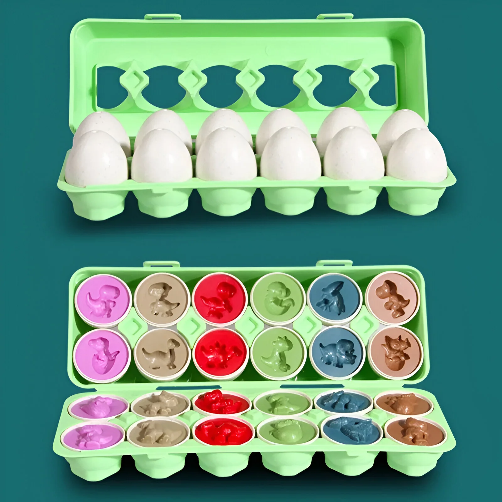 En ouvrant chaque œuf, il découvre des formes et couleurs assorties, l’aidant à développer sa motricité fine, sa coordination main-œil et à apprendre les bases de la géométrie de façon ludique. 🟠🔺🟢