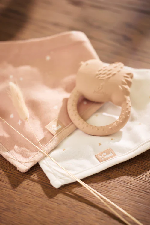L’anneau de dentition du petit oiseau rose de la marque Jollein sera votre allié idéal pour soulager bébé lors de ses poussées dentaires.