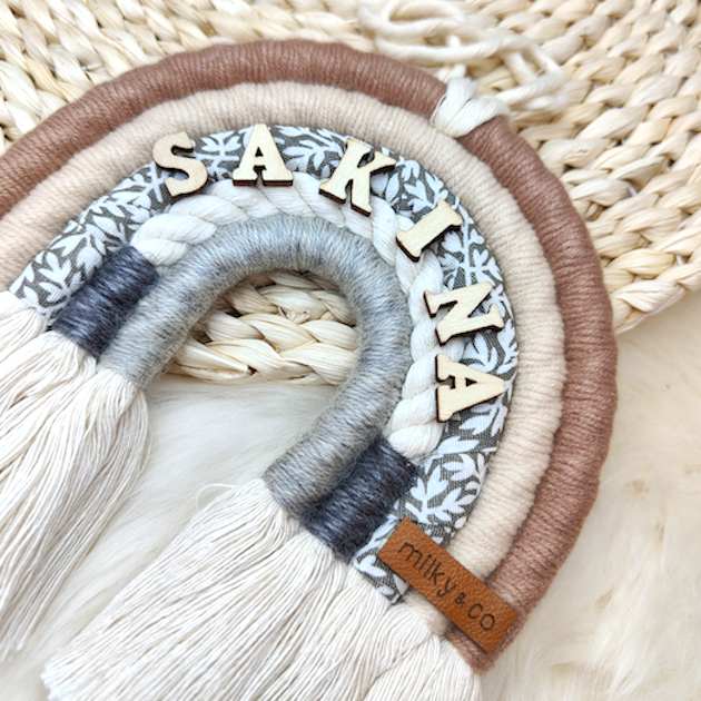 Cet arc-en-ciel à suspendre est une décoration idéale pour chambre d’enfant ou pour habiller les murs de sa chambre. Parfait également pour compléter un coffret naissance. Personnalisé avec le prénom ou mot de votre choix (maximum 9 caractères). Lettres en bois. Petit cordon pour le suspendre. Dimensions : 15 cm X 15 cm