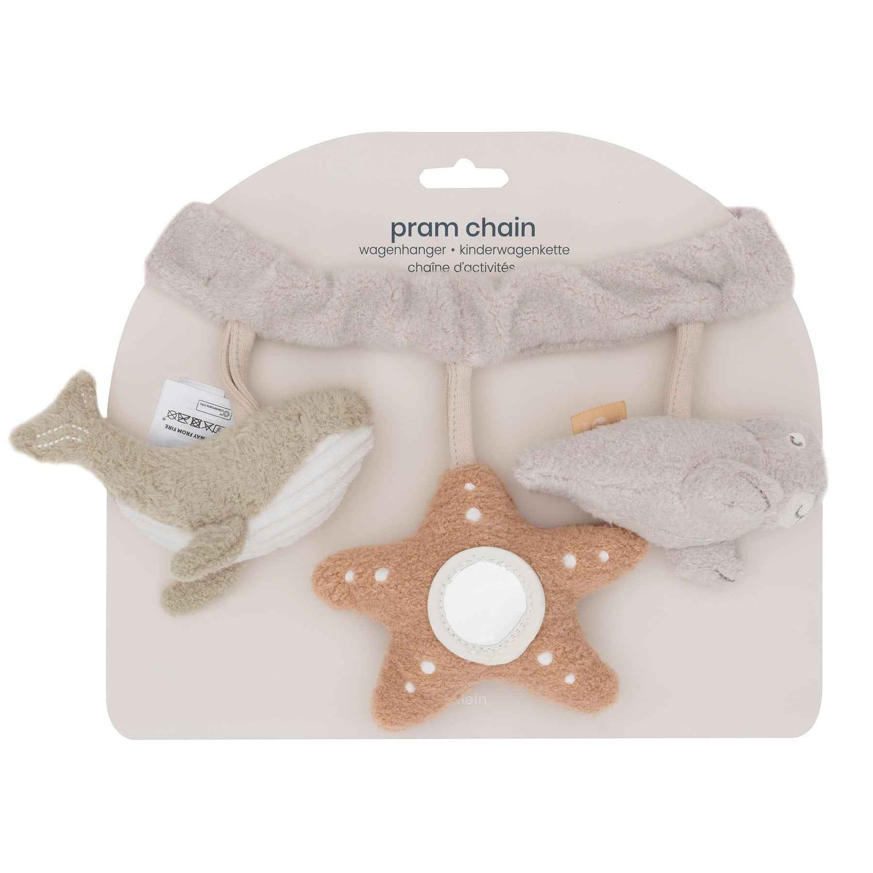 Cette jolie chaîne d’activité sur le thème marin accompagnera bébé dans toutes ses balades. Baleine, étoile de mer et tortue éveillent sa curiosité grâce à leurs textures toutes douces et leurs formes amusantes. Facile à fixer sur la poussette ou le cosy, elle stimule les sens et l’éveil de bébé tout en douceur.