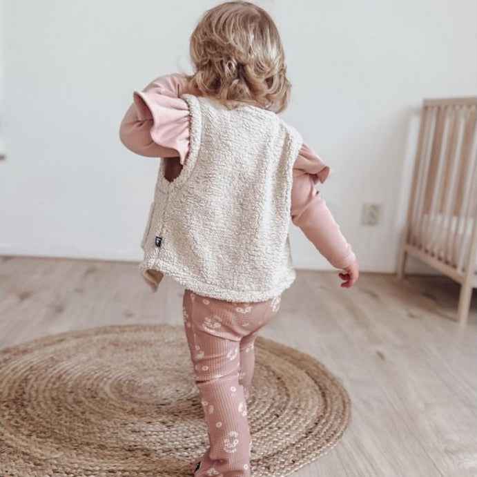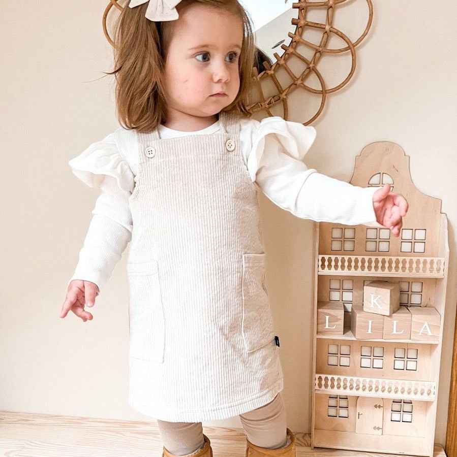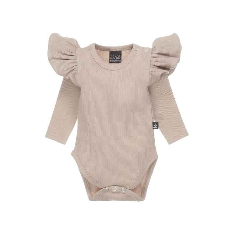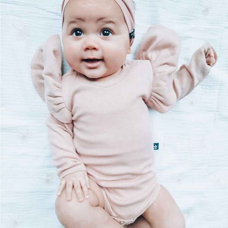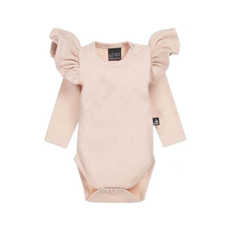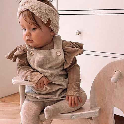 La barboteuse à volant côtelé est ornée de volants délicats, ajoutant une note féminine et charmante à l’ensemble. Les volants créent un mouvement léger et aérien, apportant une touche de fantaisie à la tenue de votre bébé.
