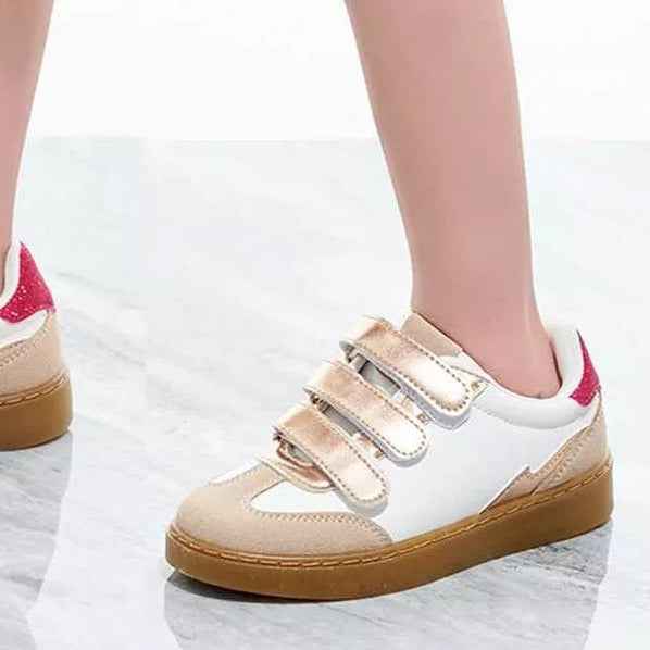 Baskets fille à scratch, alliant style et confort. Disponibles du 25 au 36, elles se déclinent en blanc avec des touches dorées et fuchsia pour un look ultra-tendance. Faciles à enfiler grâce à leur fermeture à scratch, elles assurent un bon maintien et un confort optimal au quotidien. Idéales pour compléter toutes les tenues