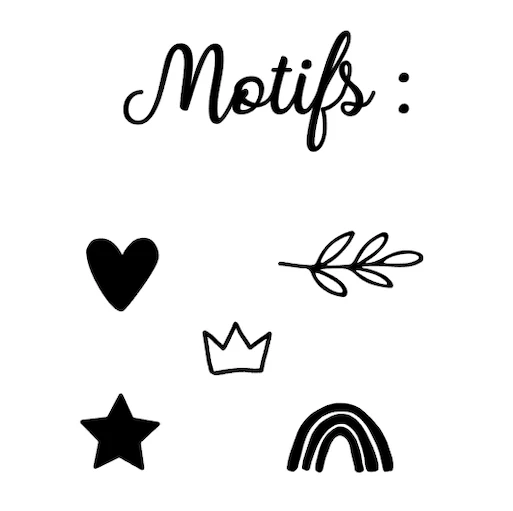 Motifs : cœur, étoile, branche, arc en ciel ou couronne.