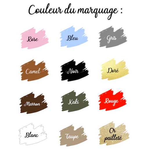 Le prénom ou mot et motif sera inscrit dans la couleur de votre choix.