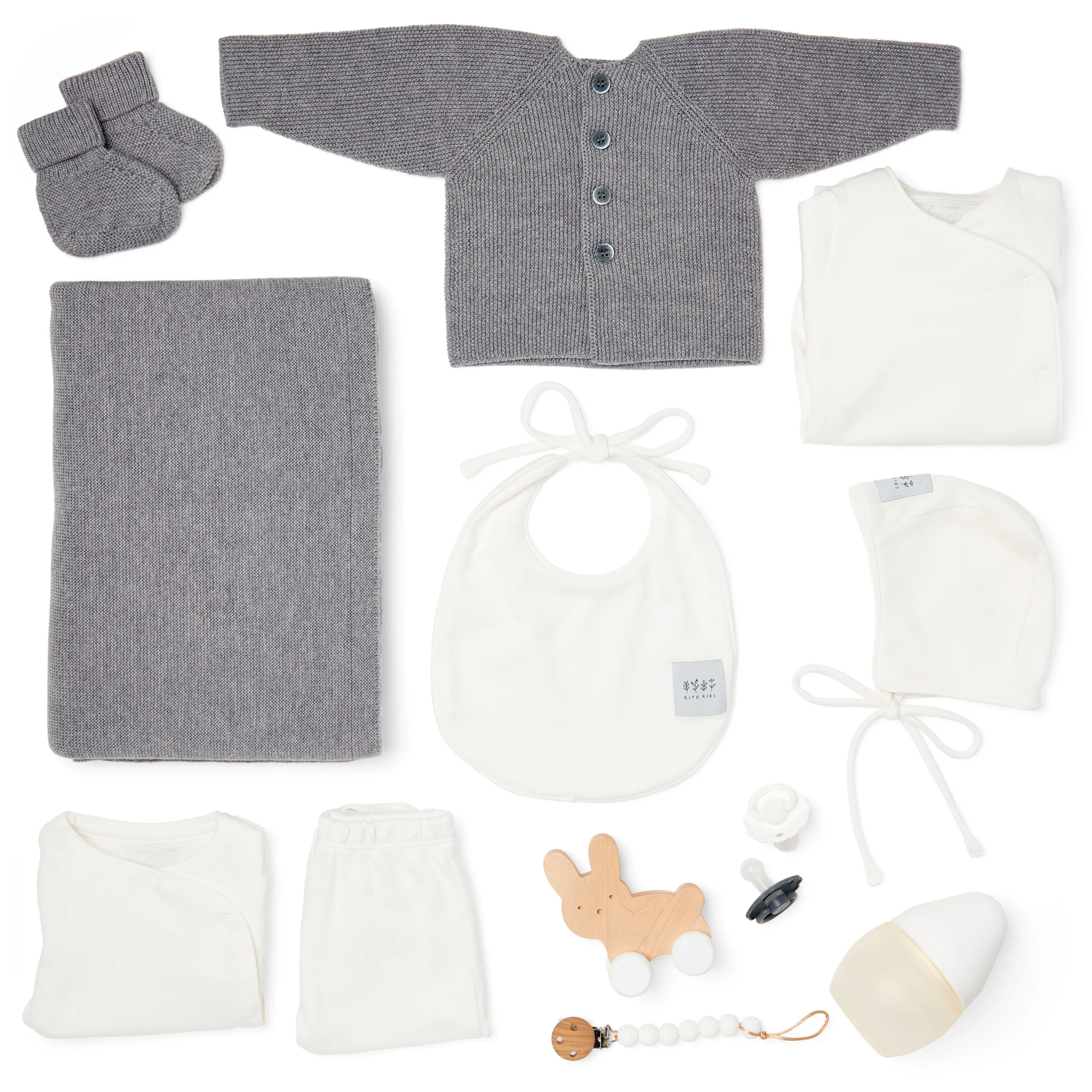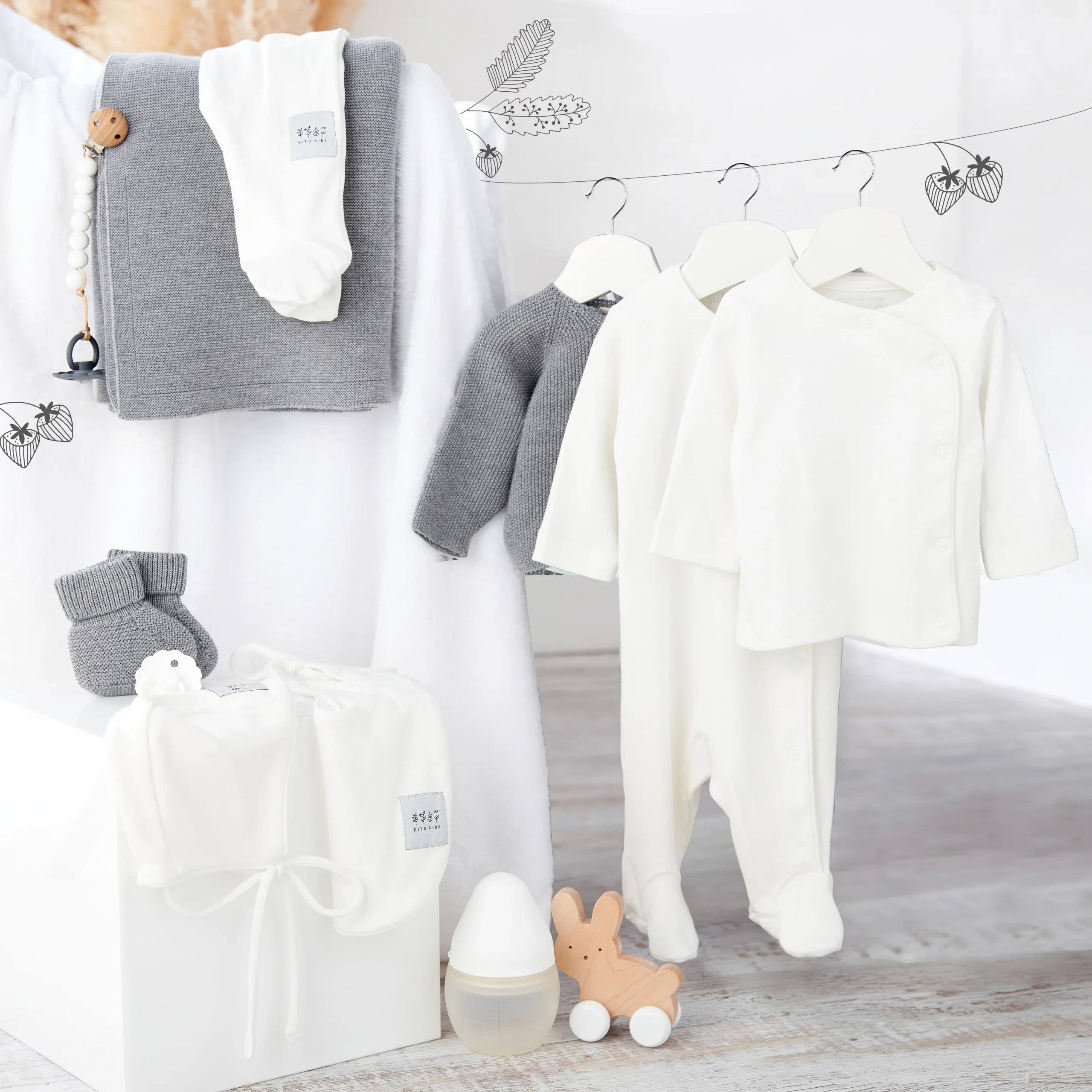 Cette box réunit toutes les pièces indispensables pour les premiers jours de bébé.