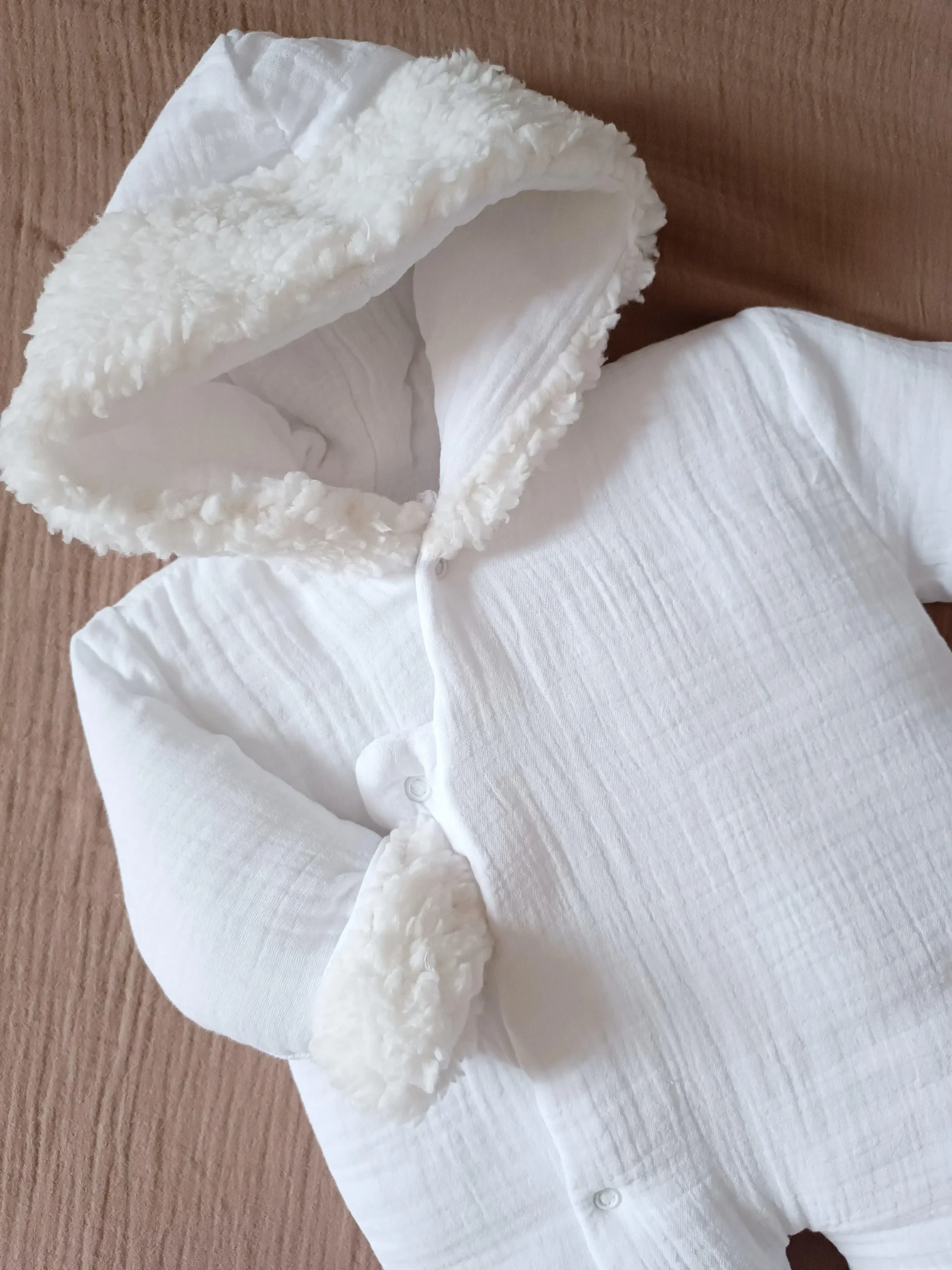Combinaison pilote en gaze de coton fourrure blanc – personnalisable –