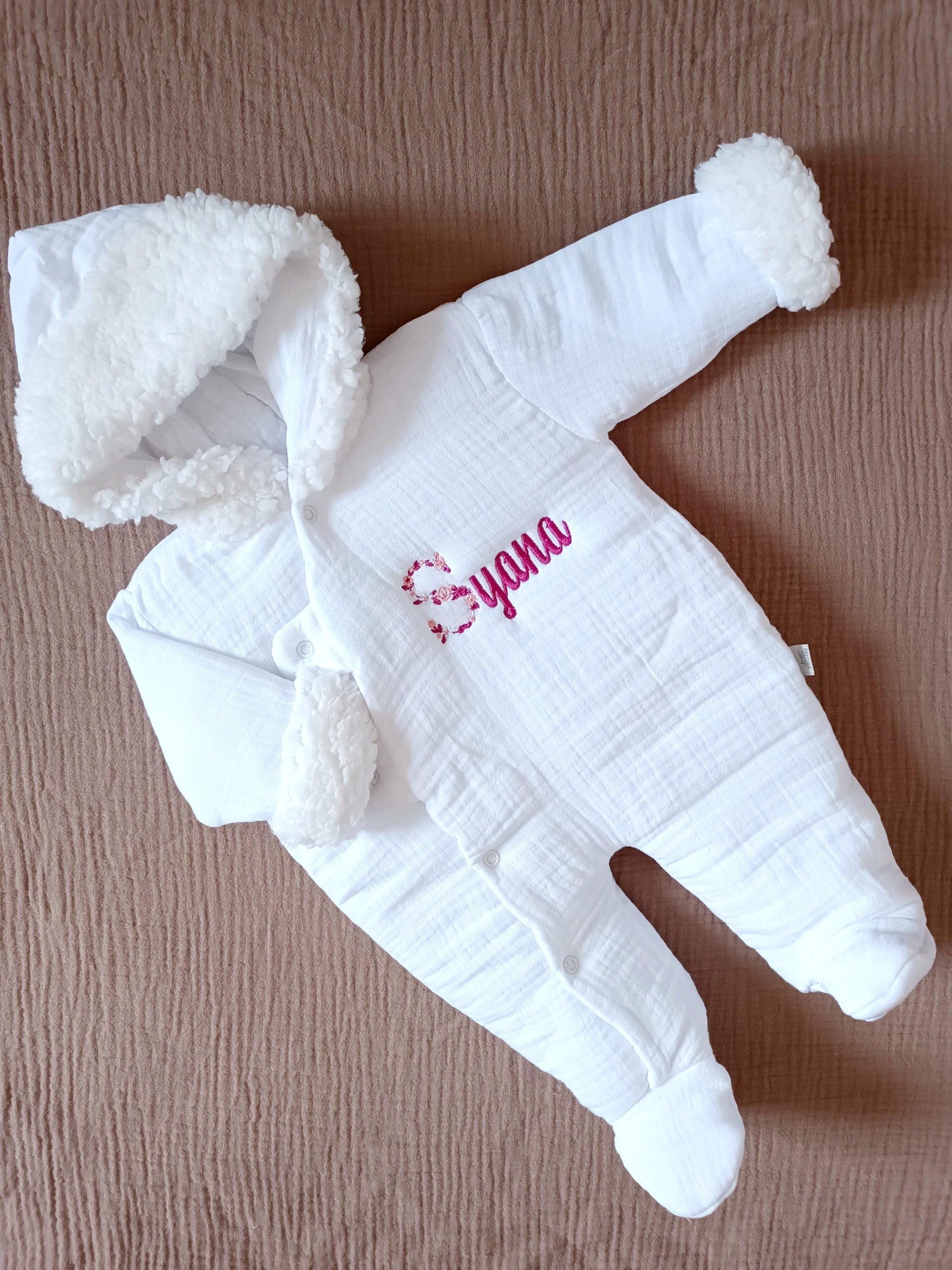 Ajoutez une touche personnelle à cette combinaison indispensable pour garder votre bébé bien au chaud et en toute élégance.