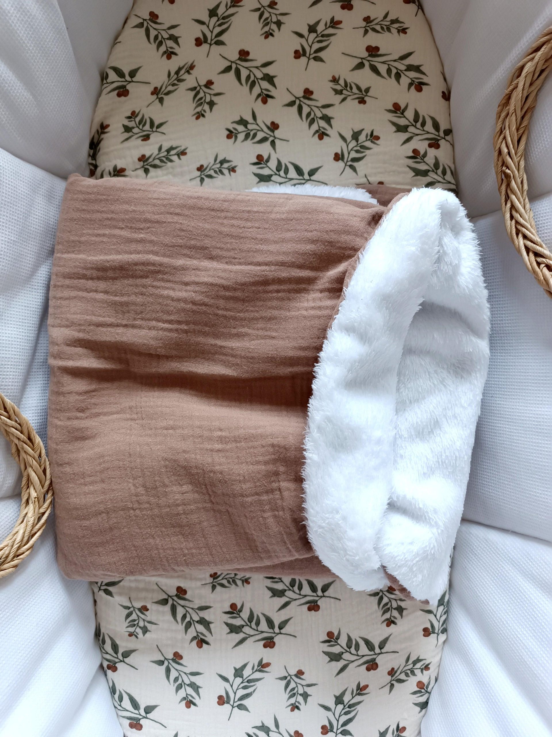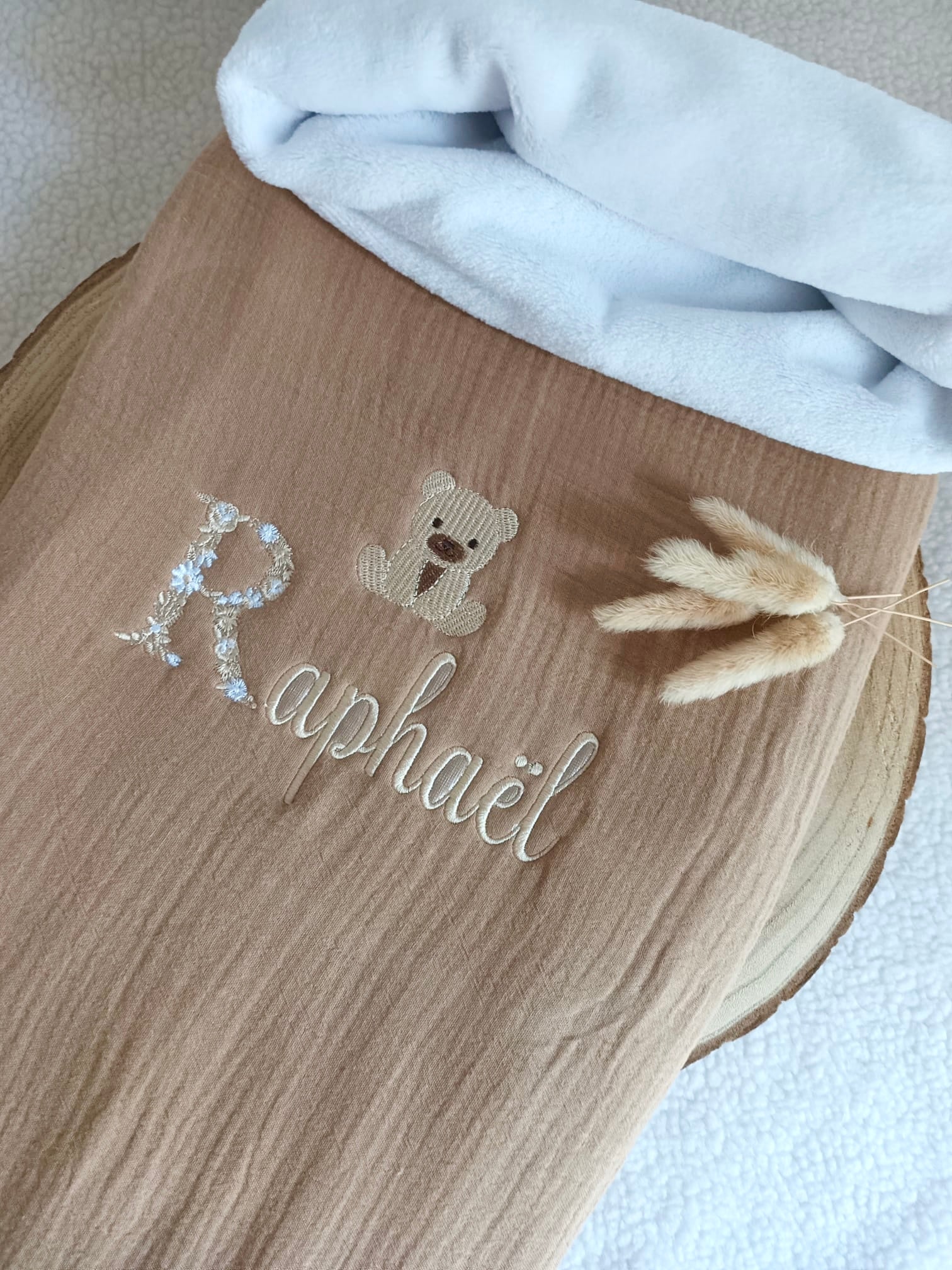 Couverture en gaze de coton et polaire marron – personnalisable –