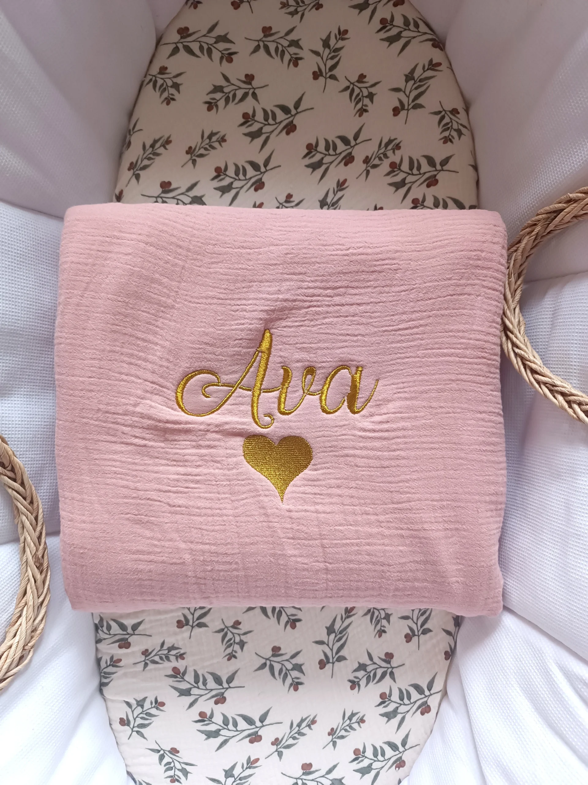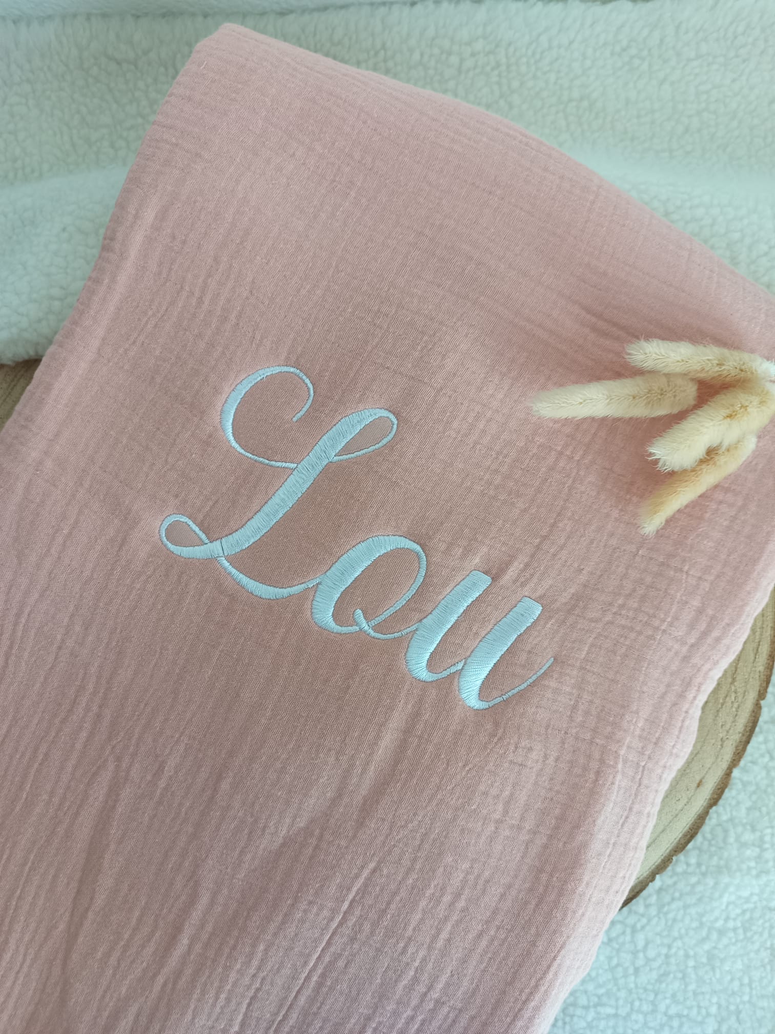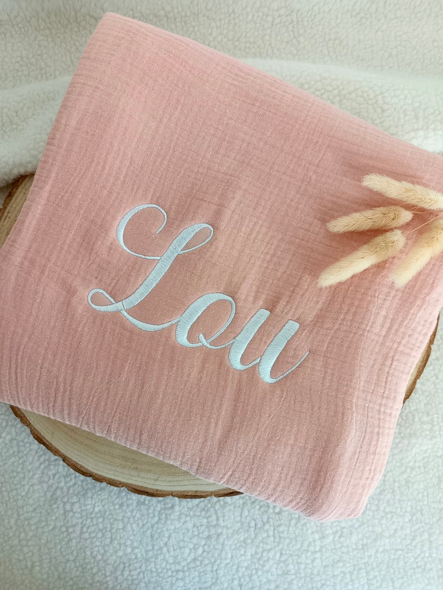 Offrez à bébé un cocon de douceur avec notre couverture en gaze de coton, personnalisable selon vos envies ! Mesurant 90 x 90 cm, cette couverture est parfaite pour envelopper bébé dans un confort apaisant. Disponible en plusieurs couleurs élégantes — blanc, beige, vert sauge, terracotta, rose, bleu ciel et bleu denim — elle peut être personnalisée avec le prénom de l’enfant ou un petit message pour une touche unique. Idéale pour la maison, la poussette ou les sorties, cette couverture est un indispensable pour les parents !