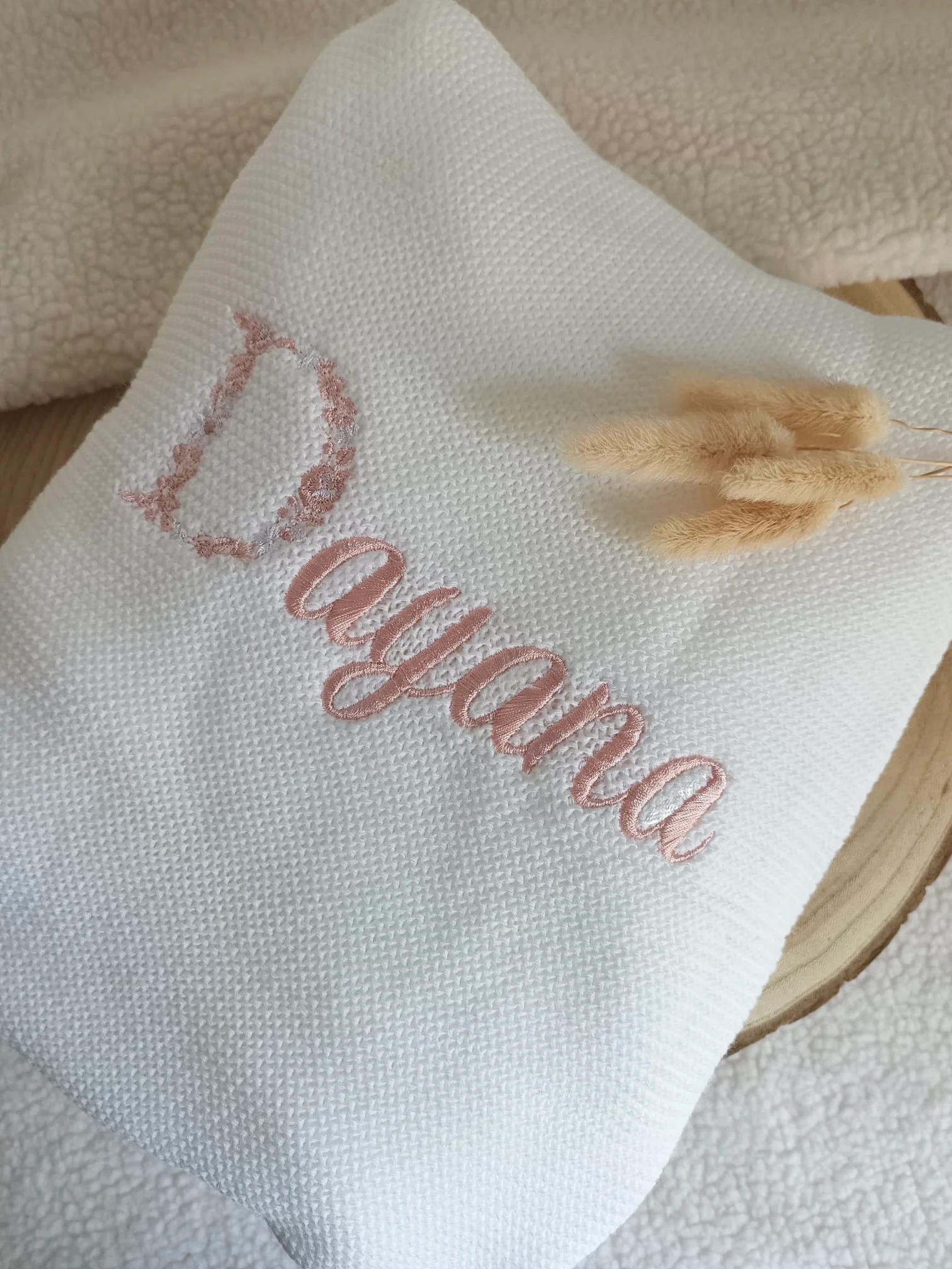 Couverture en maille blanc – personnalisable –