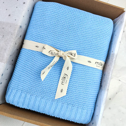 Couverture maille bleu personnalisée