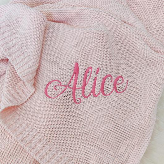 Idée cadeau de naissance : Couverture tricot, personnalisée et brodée au prénom de bébé !