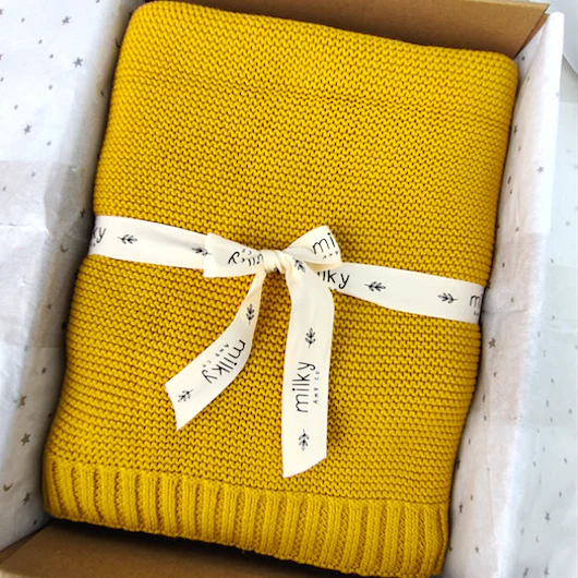 Couverture maille moutarde personnalisée