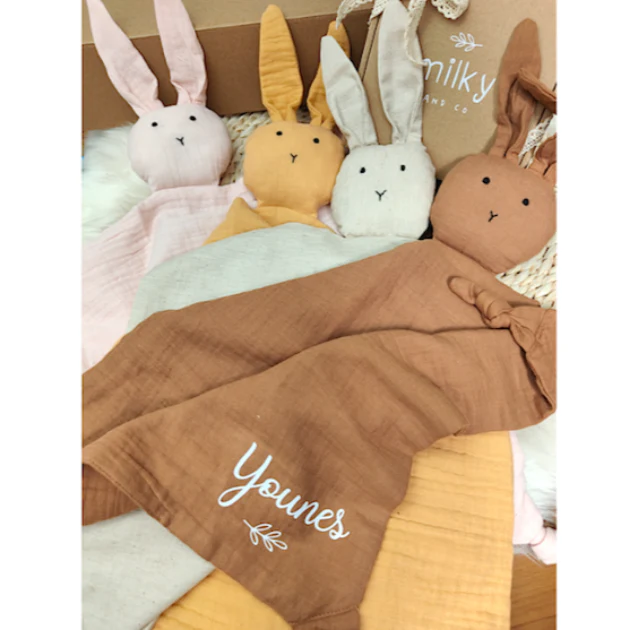 Voici un joli doudou lange mousseline qui saura cajoler bébé.