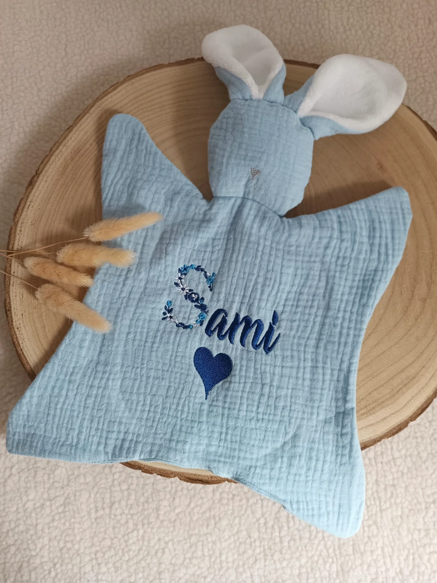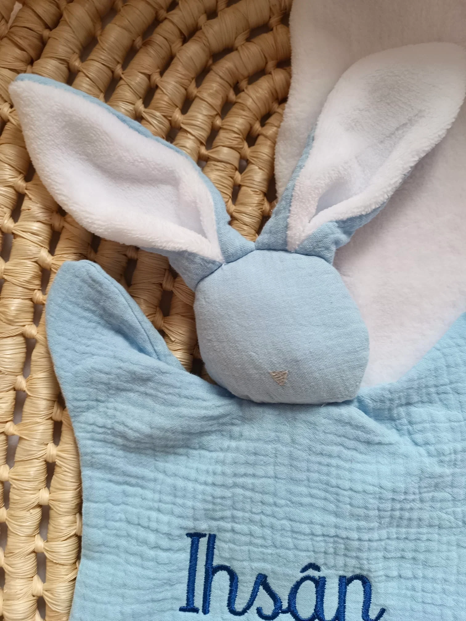 Faites de chaque moment de câlin un instant magique avec notre doudou lapin en gaze de coton. Un cadeau idéal pour les naissances, les anniversaires ou simplement pour faire plaisir !
