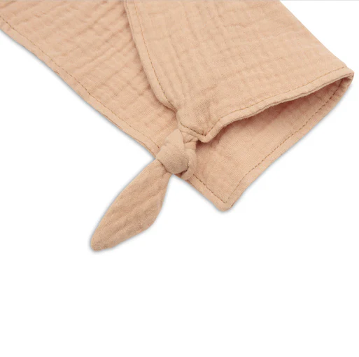 Il pourra être utilisé comme doudou et ses petits nœuds sur les côtés vous permettront d’attacher toutes sortes de sucettes. Les coins pourront également être mâchouillés.