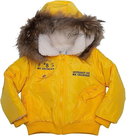 Doudoune courte à capuche, Manches longues, Col montant, Fermeture zippée, Fourrure synthétique, Motif dos, Logo brodé