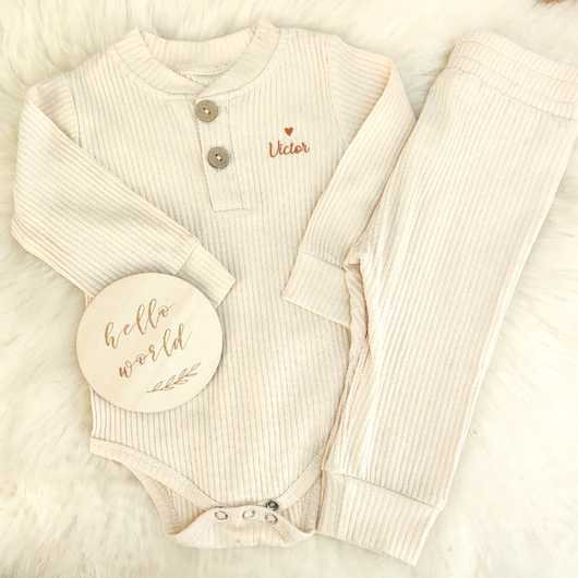 Cet ensemble peut être personnalisé avec le prénom, mot ou initiale de votre choix.