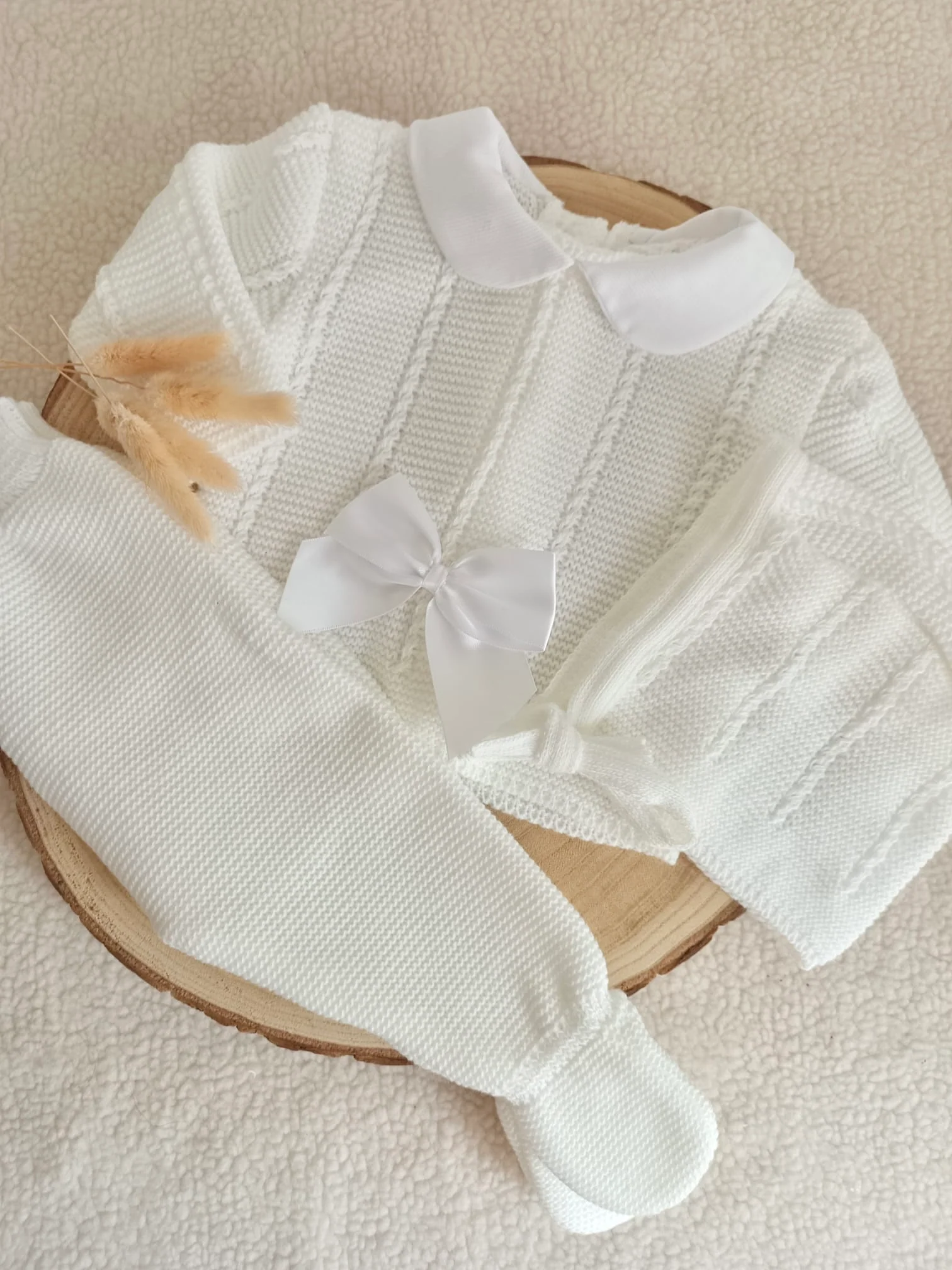 Un ensemble parfait pour les premières sorties de bébé, alliant praticité et élégance. Un choix idéal pour offrir et pour envelopper votre petit dans la douceur dès ses premiers moments.