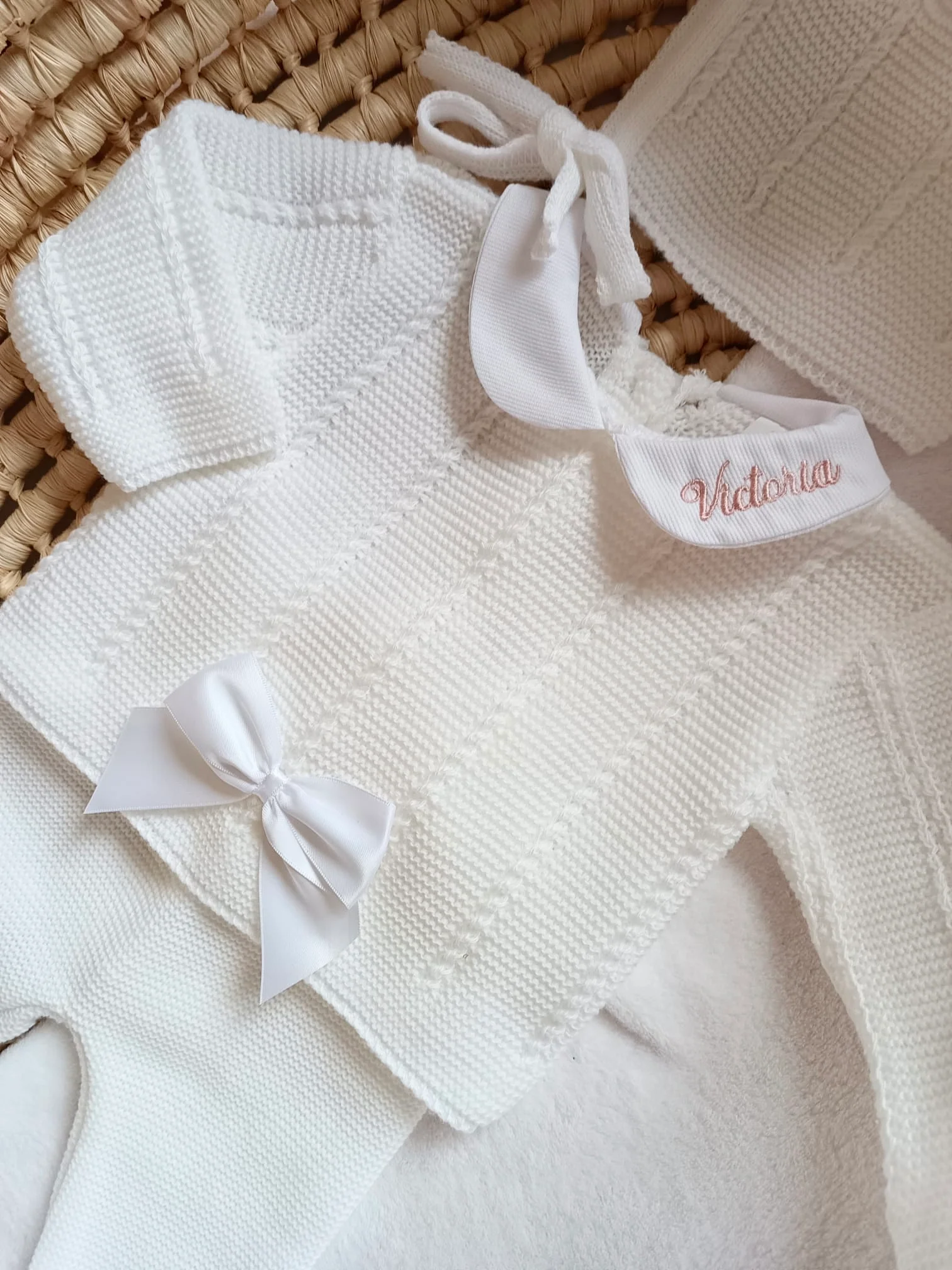 Ensemble complet blanc avec noeud satiné blanc – plusieurs tailles – personnalisable –