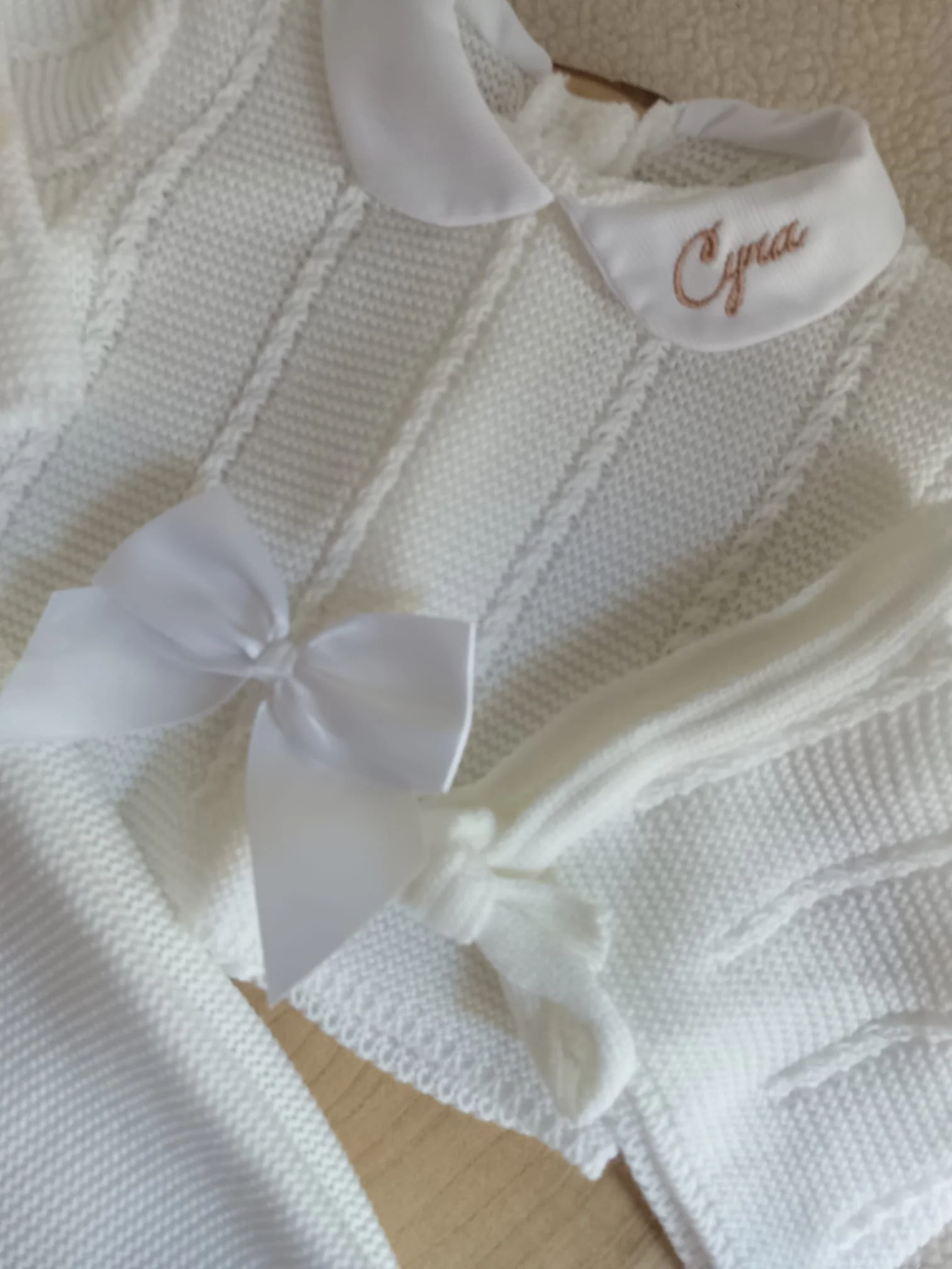 – Personnalisation : Possibilité d’ajouter une broderie sur le col du petit pull