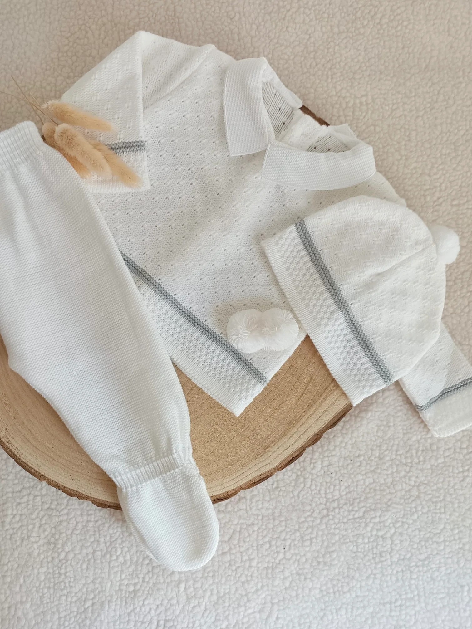 Un ensemble parfait pour les premières sorties de bébé, alliant praticité et élégance. Un choix idéal pour offrir et pour envelopper votre petit dans la douceur dès ses premiers moments.