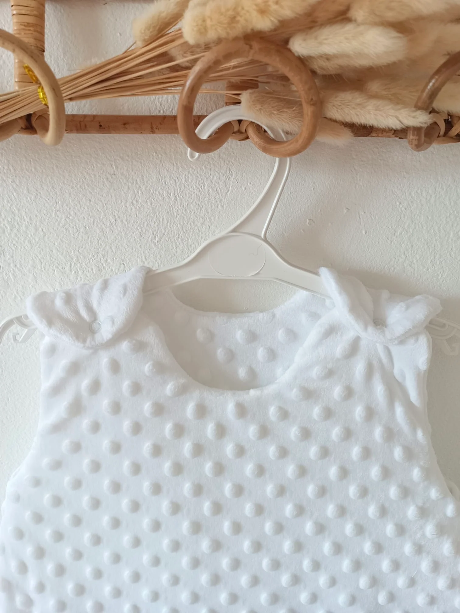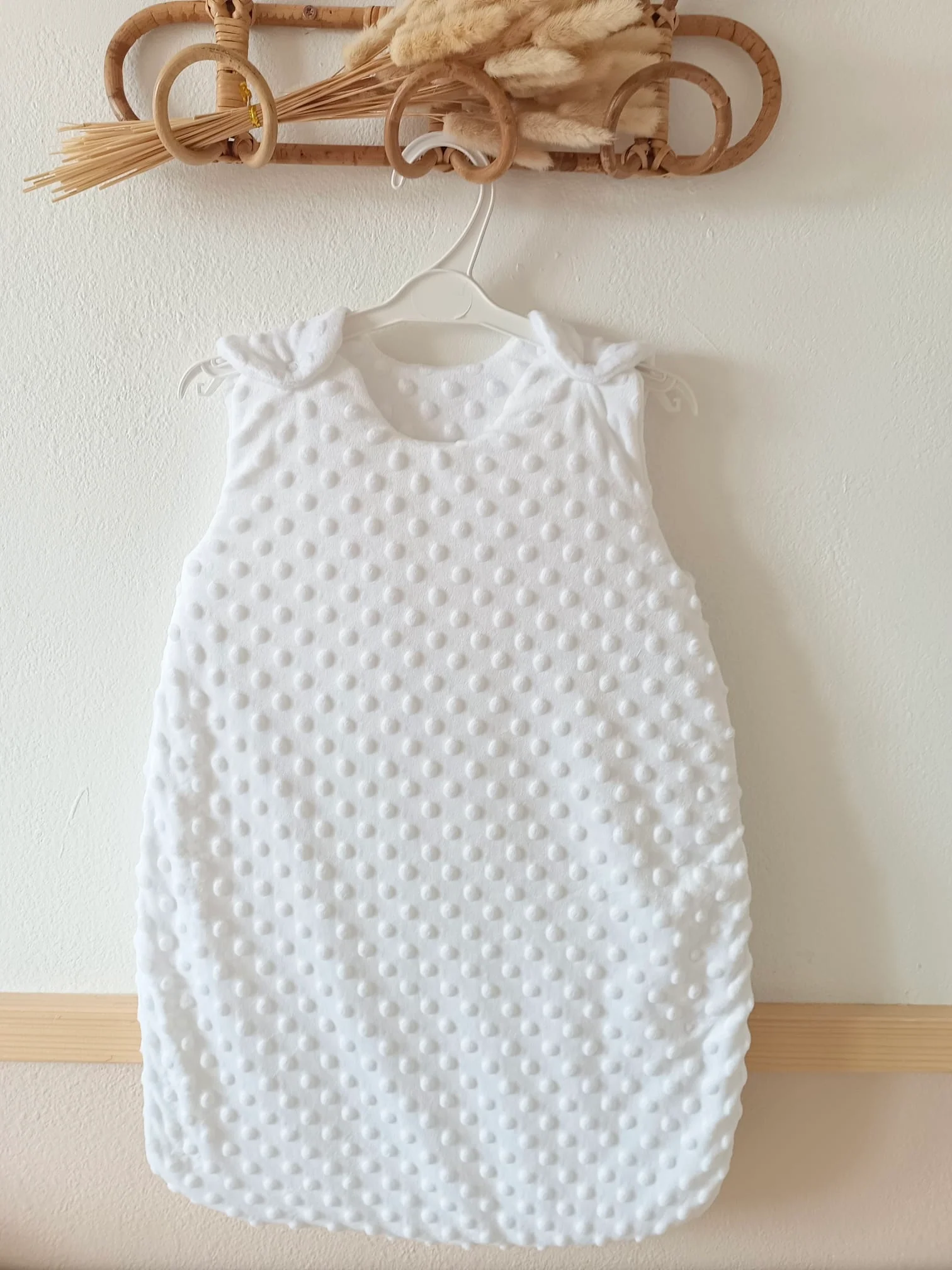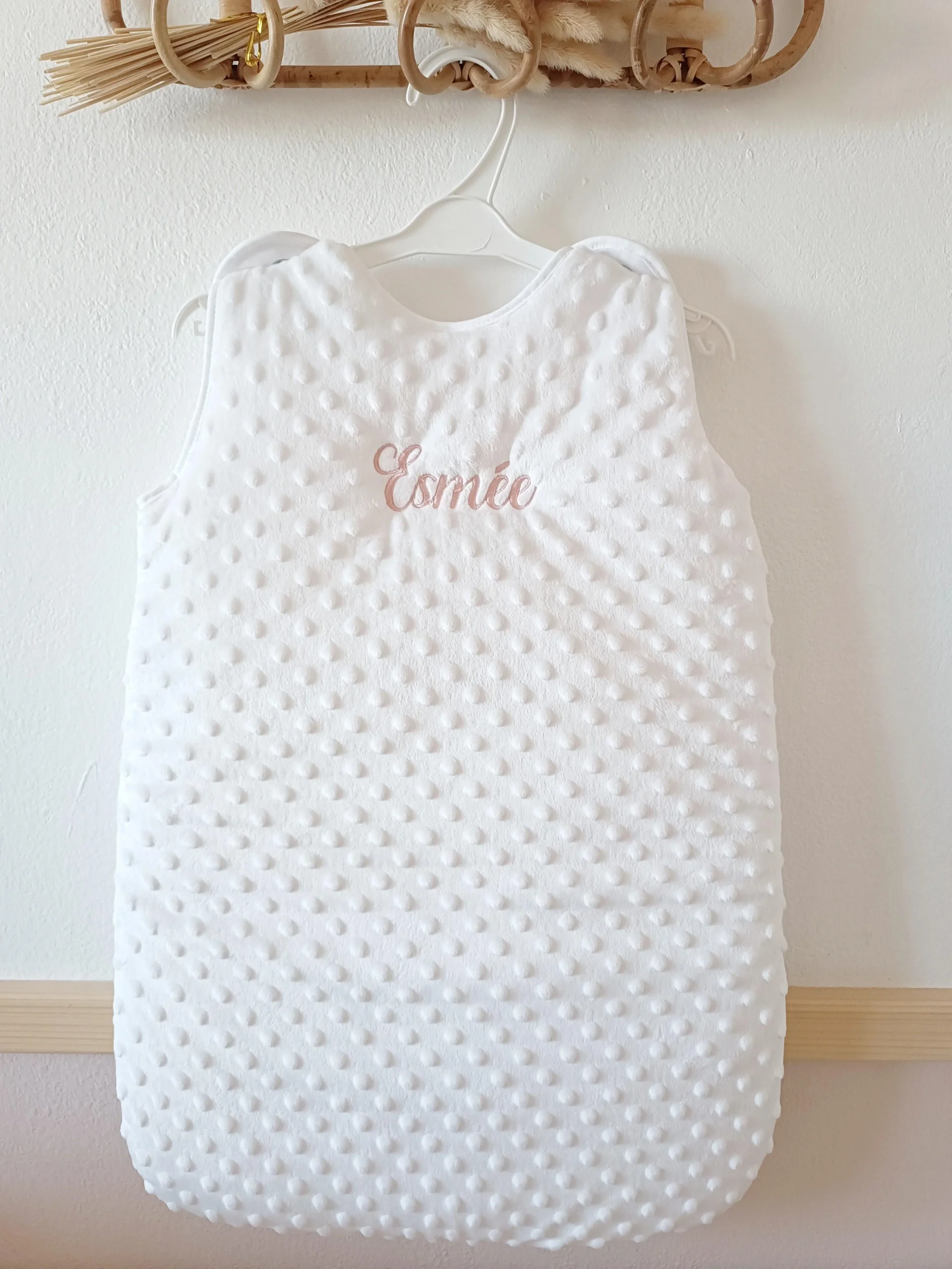 Notre gigoteuse minky douce et moelleuse en taille 0/6 mois est conçue pour envelopper votre bébé de confort dès les premiers jours. Fabriquée avec soin au Portugal, elle est disponible en plusieurs couleurs pour s’adapter à tous les goûts et styles. Personnalisable en broderie, vous pouvez y ajouter le prénom de votre enfant pour une touche unique et précieuse. Idéale pour un sommeil en toute sérénité !