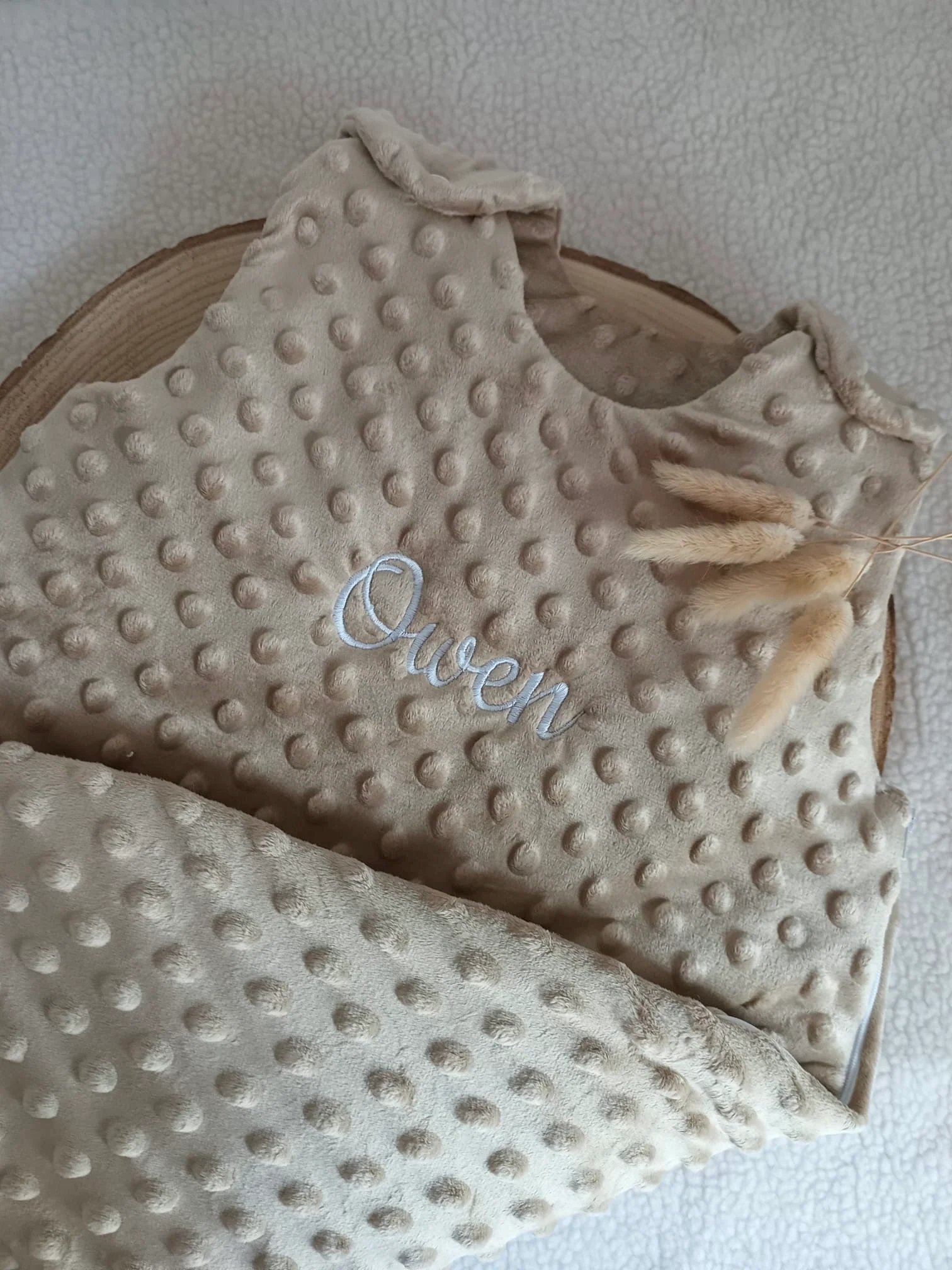 Notre gigoteuse minky douce et moelleuse en taille 0/6 mois est conçue pour envelopper votre bébé de confort dès les premiers jours. Fabriquée avec soin au Portugal, elle est disponible en plusieurs couleurs pour s’adapter à tous les goûts et styles. Personnalisable en broderie, vous pouvez y ajouter le prénom de votre enfant pour une touche unique et précieuse. Idéale pour un sommeil en toute sérénité !