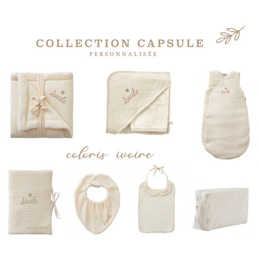 – Personnalisation en broderie ou avec un flocage thermique professionnel (lavage en machine 30°, pas de repassage sur le prénom).