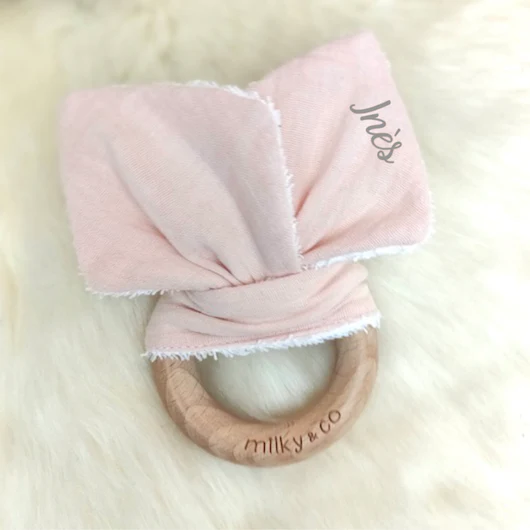 Hochet lapin rose personnalisable
