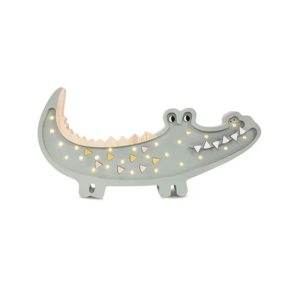 Avec sa forme étirée et son allure amusante, cette veilleuse crocodile devient vite un repère familier dans l’univers de l’enfant. Posée sur une étagère ou près du lit, elle apporte une lumière douce pour accompagner les histoires, les jeux ou l’endormissement.