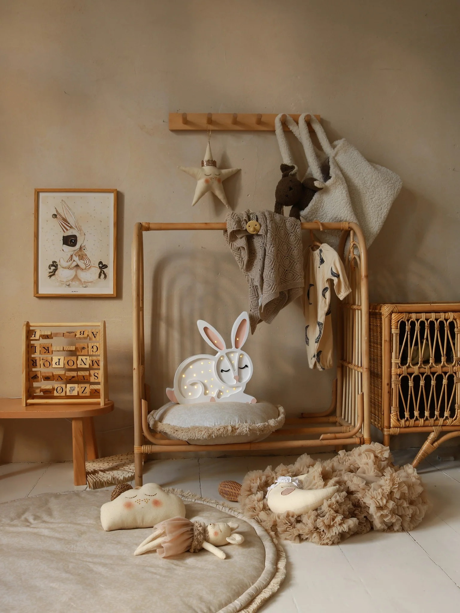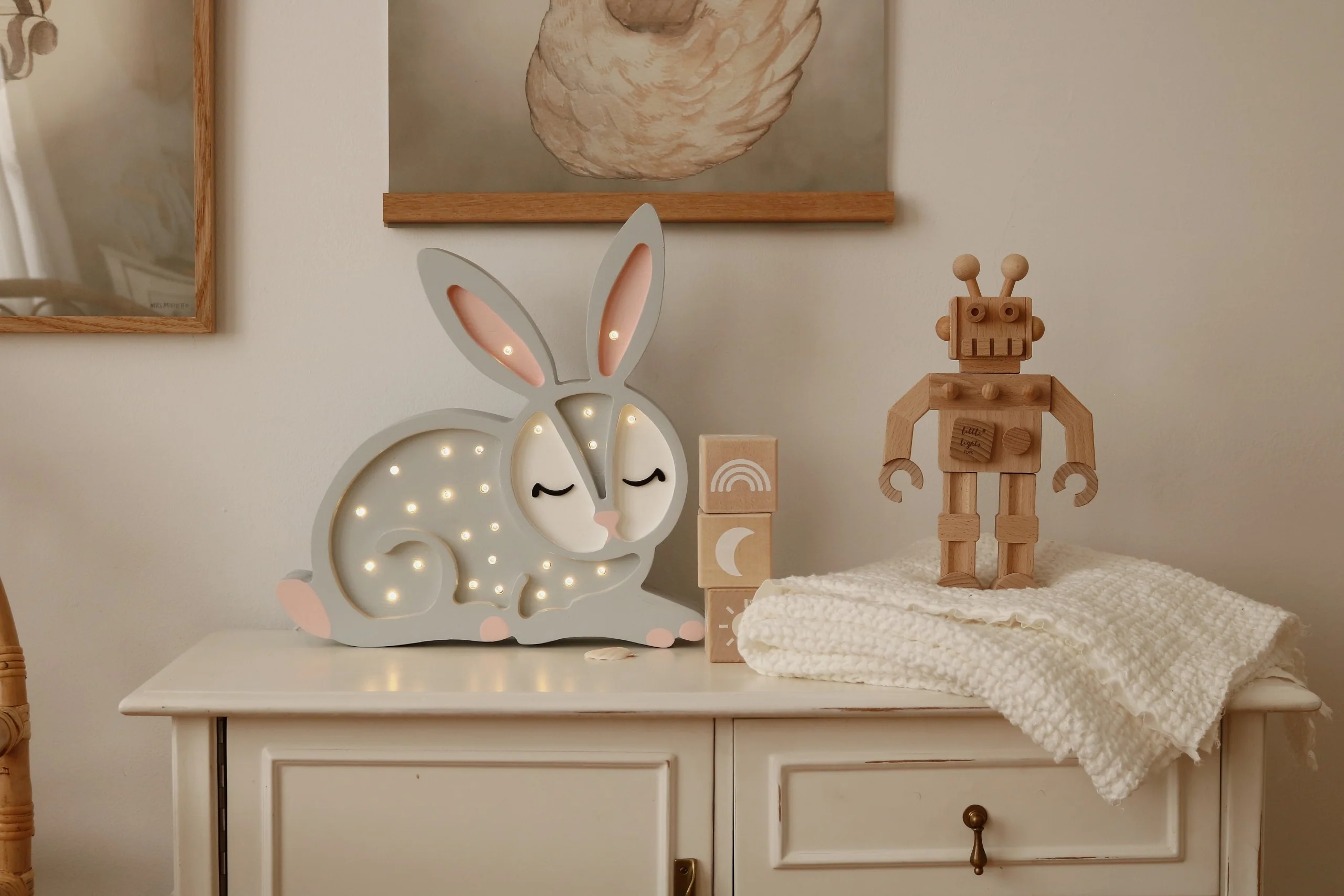 Avec ses oreilles dressées et son expression paisible, la lampe Lapin crée un repère rassurant dans la chambre des enfants. Elle diffuse une lumière chaleureuse et silencieuse, idéale pour accompagner les moments de jeu, de lecture ou de repos.