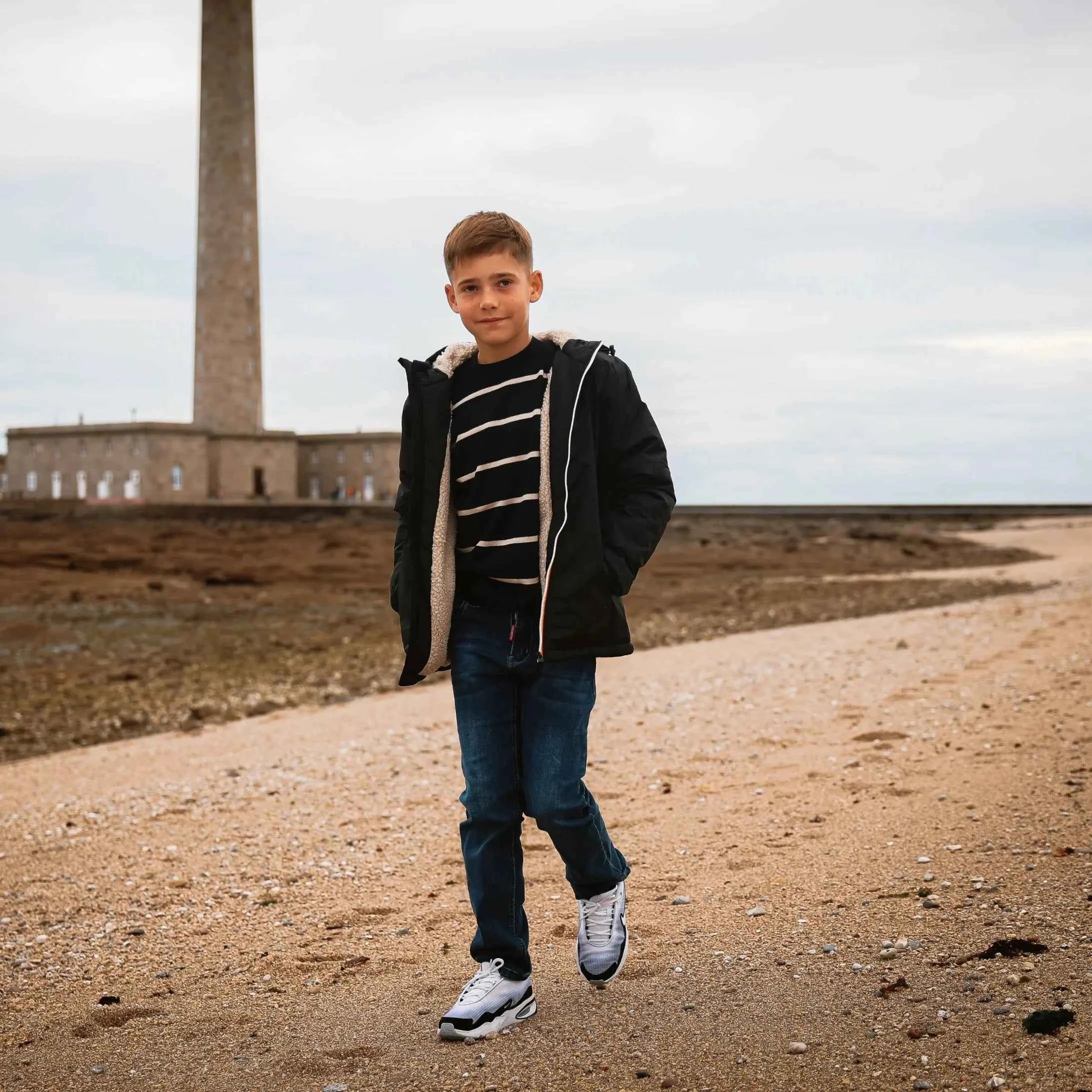 Ce manteau noir pour garçon est idéal pour affronter la saison froide avec style et confort. Doté d’une doublure en sherpa toute douce, il garde bien au chaud tout en restant léger et agréable à porter. Sa capuche protectrice, sa fermeture zippée et ses poches pratiques en font un indispensable pour l’automne et l’hiver. Facile à assortir, il complète aussi bien un look décontracté avec un jean qu’un ensemble plus urbain avec un pantalon cargo. Un manteau à la fois tendance, chaud et fonctionnel.