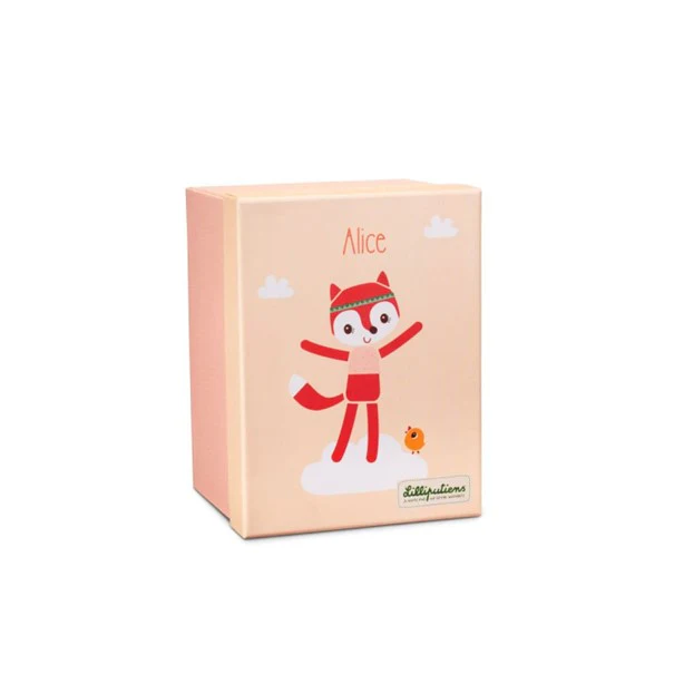Alice, la mignonne renarde, adore câliner les tout-petits. Sa belle enveloppe décorée orne magnifiquement la chambre de bébé et est bien pratique pour ranger ses jouets. Fabriqué en coton organique.