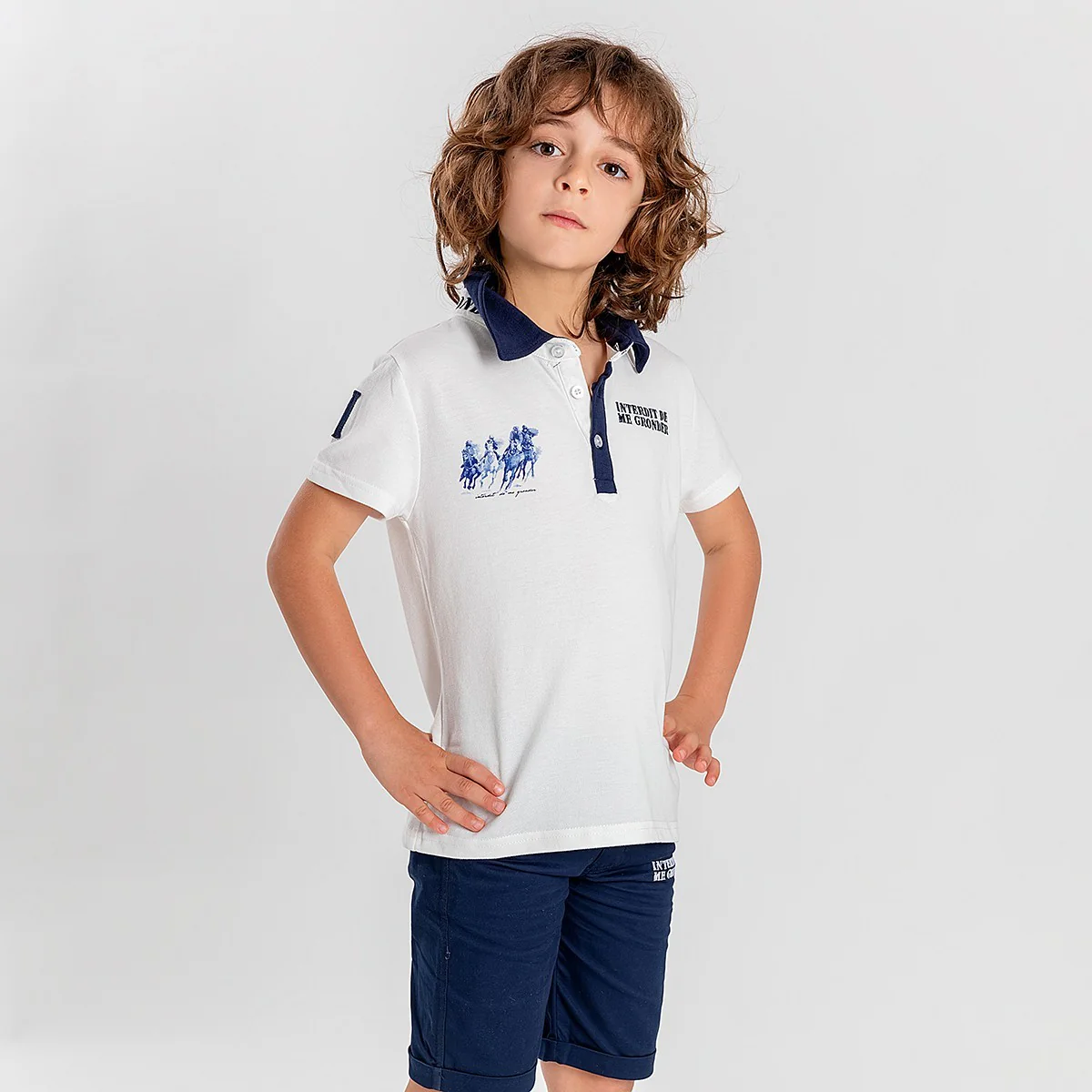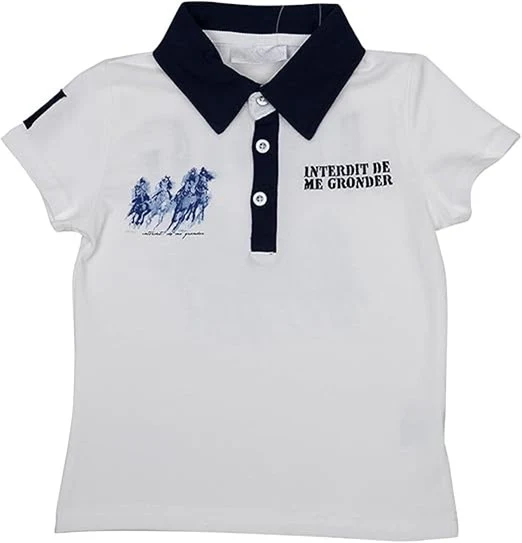 Manches courtes, Coupe droite, Col polo, Patte boutonnée sur la poitrine, Motif au dos