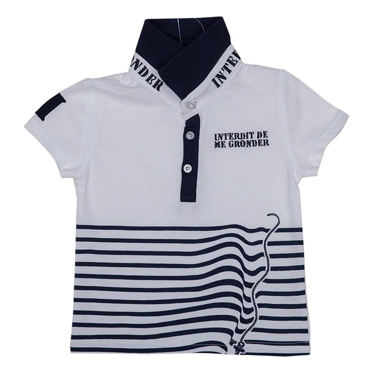 Manches courtes, Coupe droite, Col polo, Patte boutonnée sur la poitrine, Rayures, Sérigraphie fantaisie, Logo brodé sur la poitrine