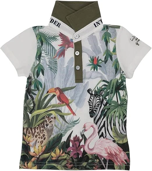 Manches courtes, Coupe droite, Col polo, Patte boutonnée sur la poitrine, Imprimé jungle all over