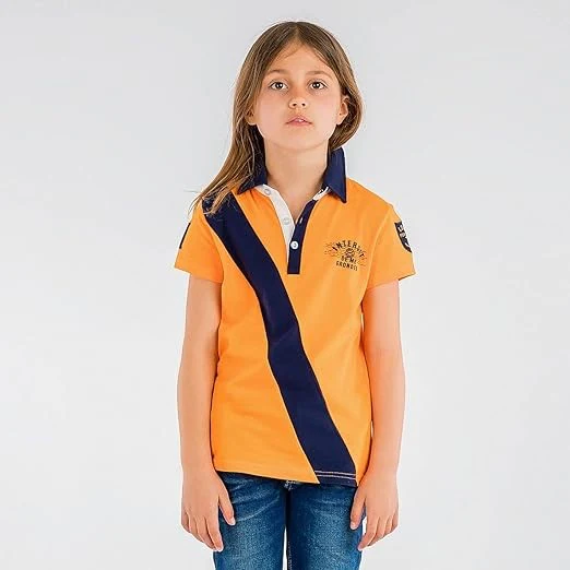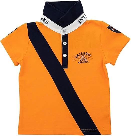 Manches courtes, Coupe droite, Col polo, Patte boutonnée sur la poitrine, Motif géométrique, Logo brodé au dos