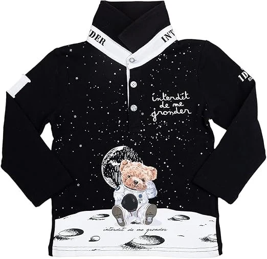 Manches longues, Coupe droite, Col polo, Patte boutonnée sur la poitrine, Logo brodé, Motif fantaisie sur le devant