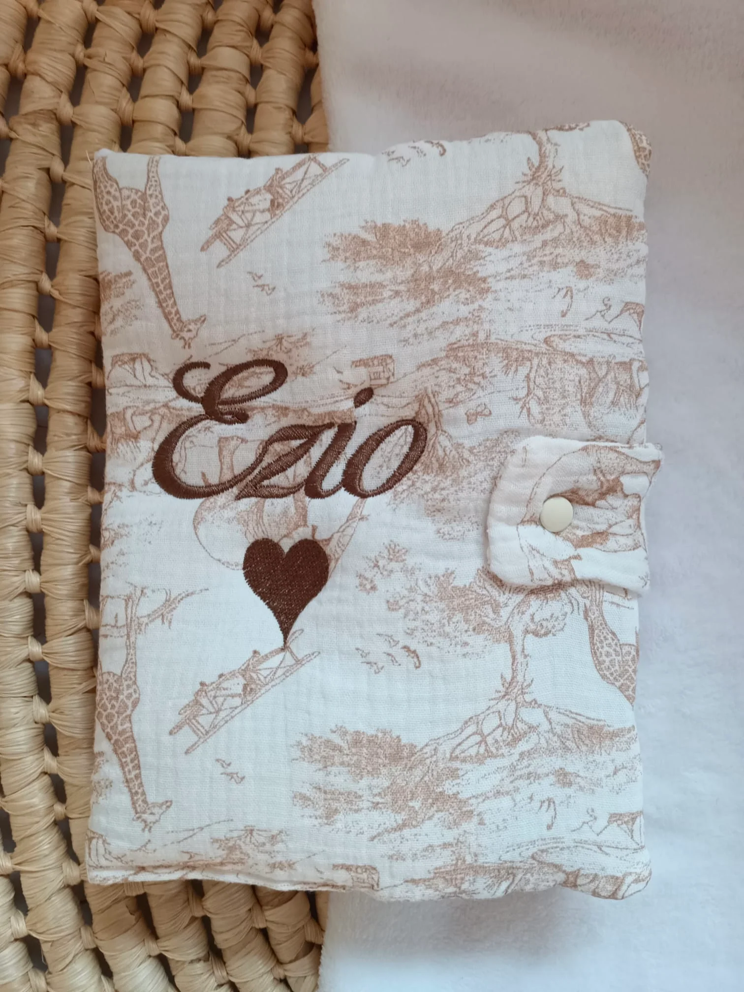 Protège carnet de santé en gaze de coton safari tons beige – personnalisable –