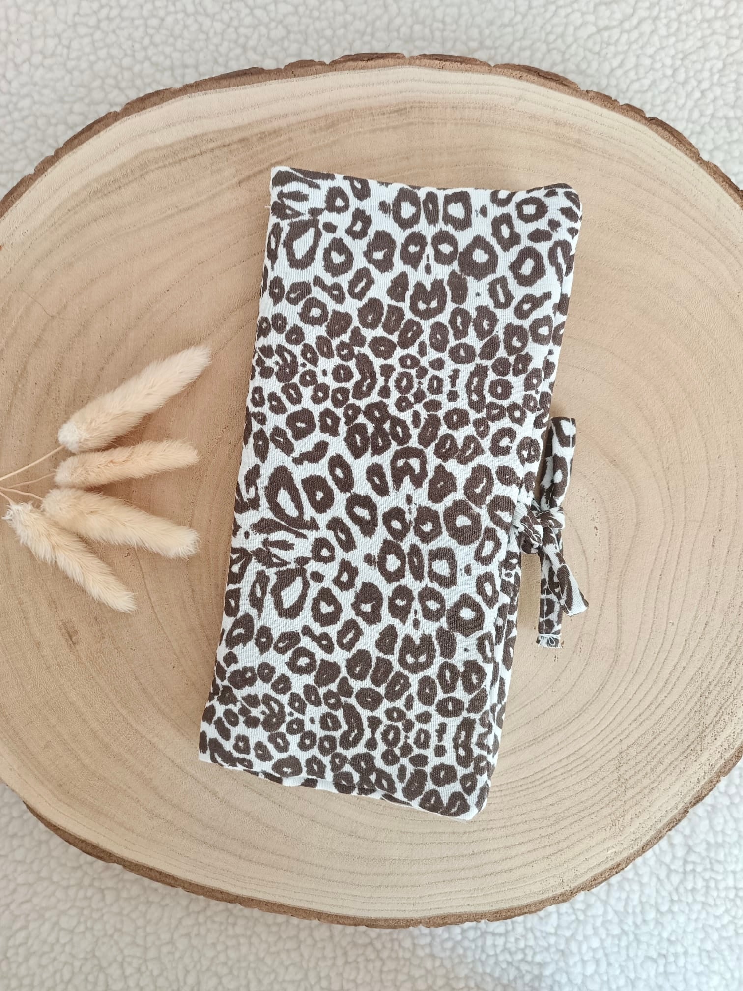 Protège livret de famille en gaze de coton blanc léopard – personnalisable –