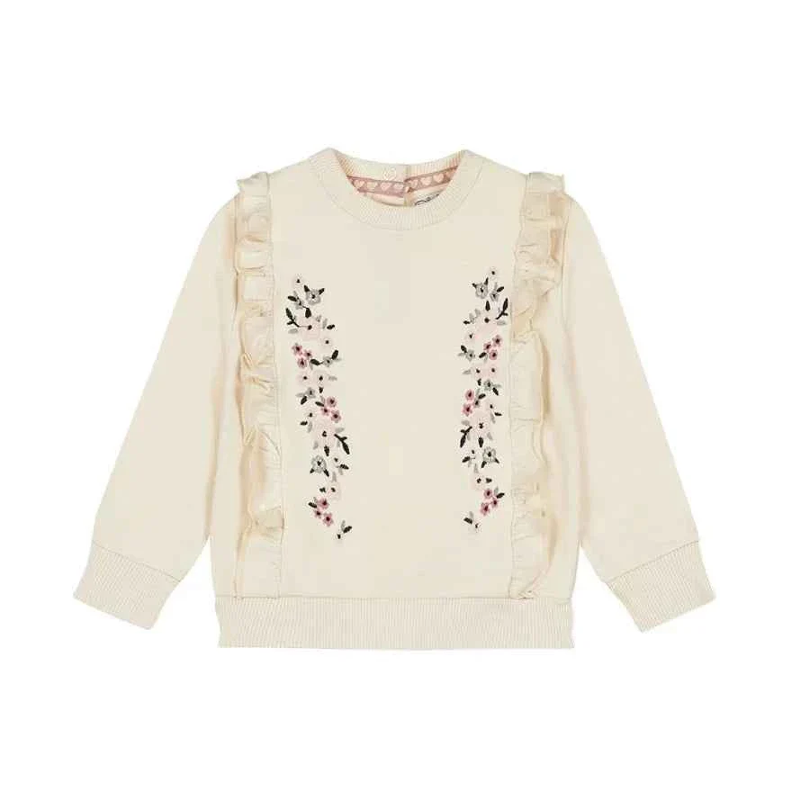 Ce pull bébé crème est un véritable concentré de douceur et d’élégance. Sa coupe confortable et son tissu moelleux en font une pièce agréable à porter au quotidien, tandis que ses magnifiques broderies florales sur le devant lui confèrent un charme délicat et raffiné. De jolis volants sont placés de part et d’autre du motif pour ajouter une touche romantique et féminine. Pratique, il dispose d’une ouverture à boutons-pression à l’épaule pour faciliter l’habillage. Facile à associer avec un legging, un jean ou une jupe, ce pull est parfait pour créer un look tendre et chic tout en assurant chaleur et confort à votre enfant.
