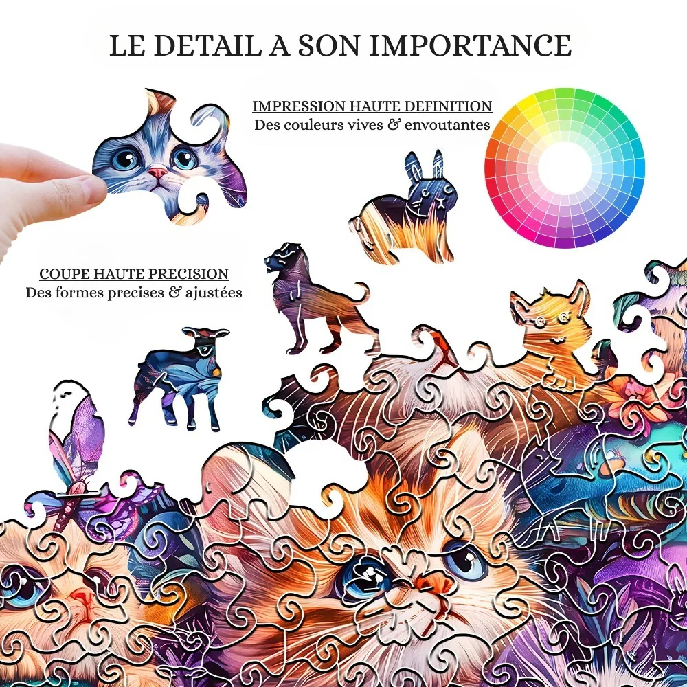 Puzzle en Bois Chattons Mignon 🍄🐱 | Cadeau Irrésistible