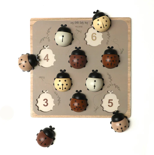 Comprend : 10 coccinelles numérotées par leurs taches et un plateau de montage.