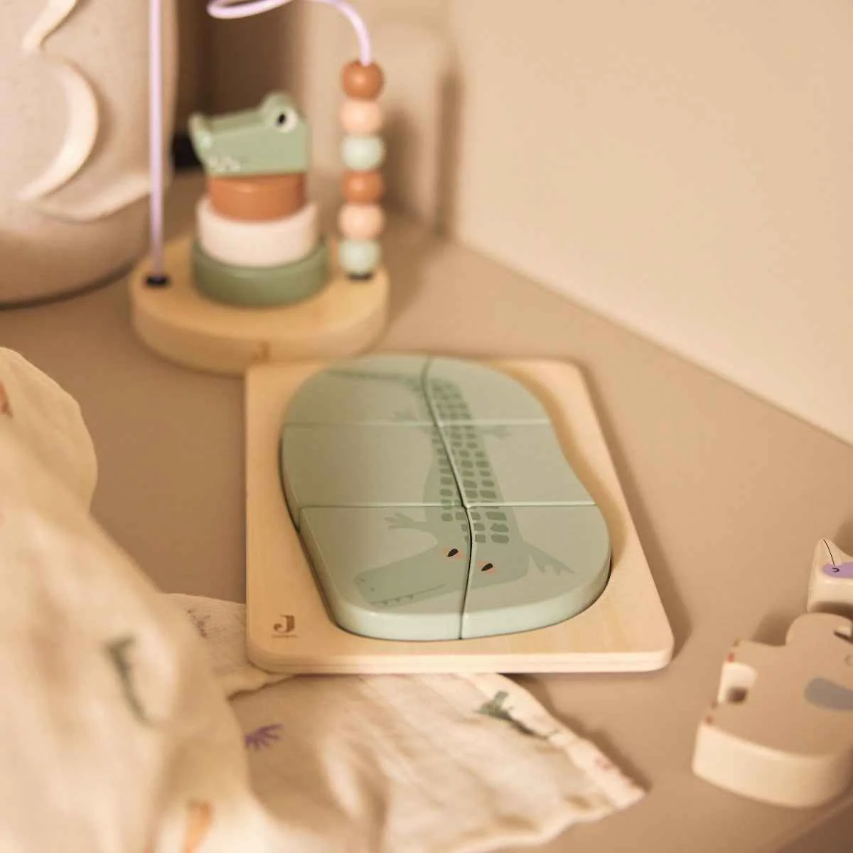 Ce charmant puzzle en bois en forme de crocodile est idéal pour stimuler la motricité fine et la concentration des tout-petits. Ses pièces aux formes arrondies sont faciles à manipuler par les petites mains, tout en encourageant la coordination œil-main et la reconnaissance des formes. Un jouet éducatif et esthétique, parfait pour éveiller bébé en douceur.