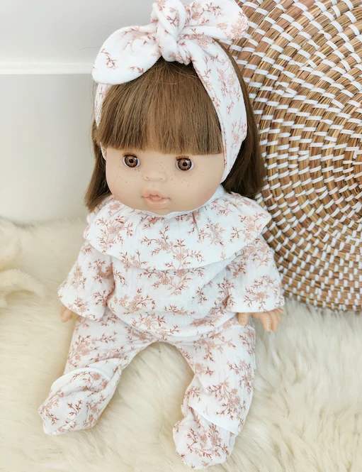 Un joli pyjama à col à personnaliser avec le tissu de votre choix ! – le bandeau à retrouver ici – le fichu disponible ici. Personnalisation possible uniquement sur les tissus unis (prénom ou mot de votre choix).