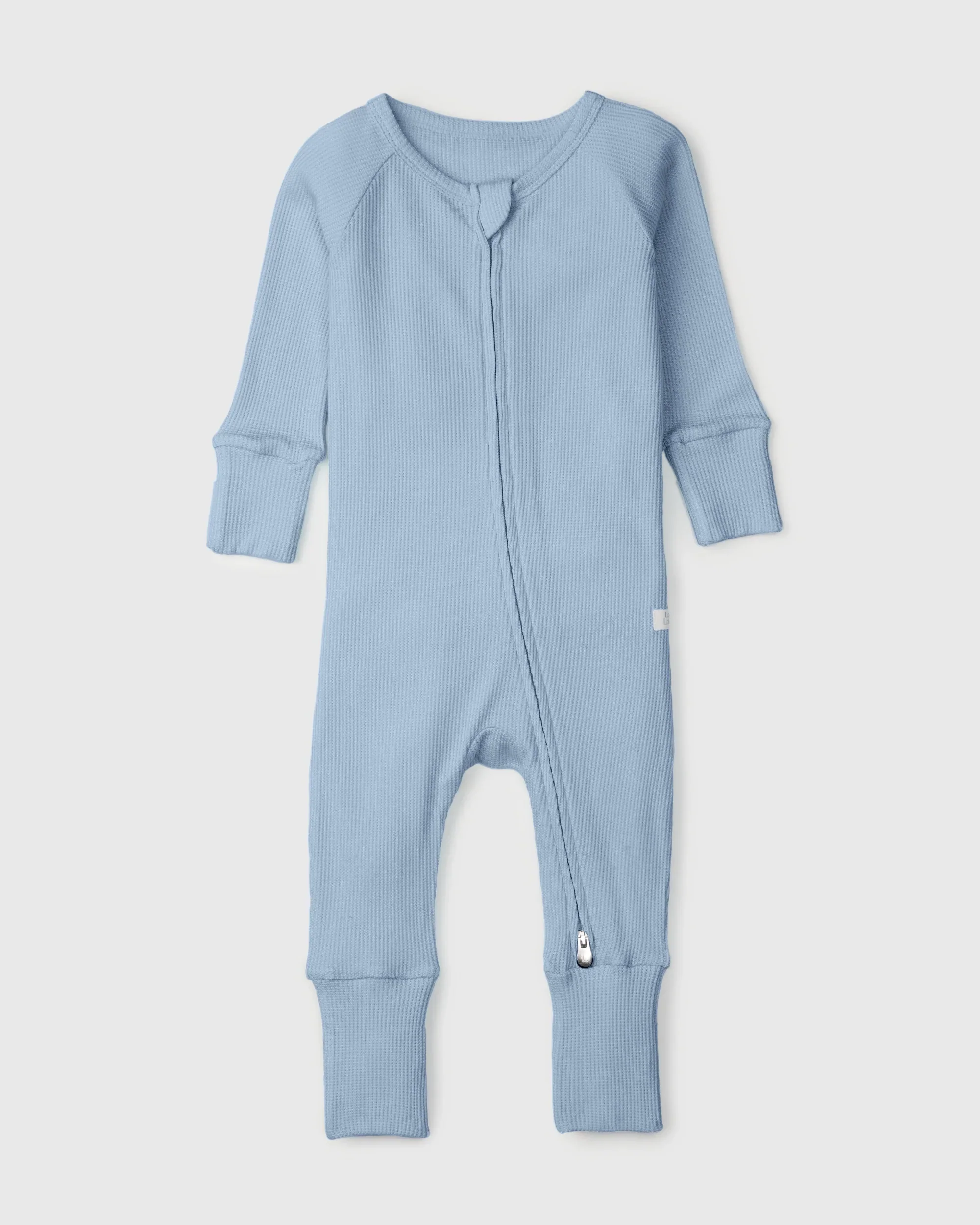 Il est doté d’une fermeture éclair complète à double sens pour faciliter le changement des couches, de coutures plates sur les épaules et les côtés du corps, ainsi que d’une étiquette d’entretien intérieure imprimée pour réduire les irritations de la peau délicate des bébés.