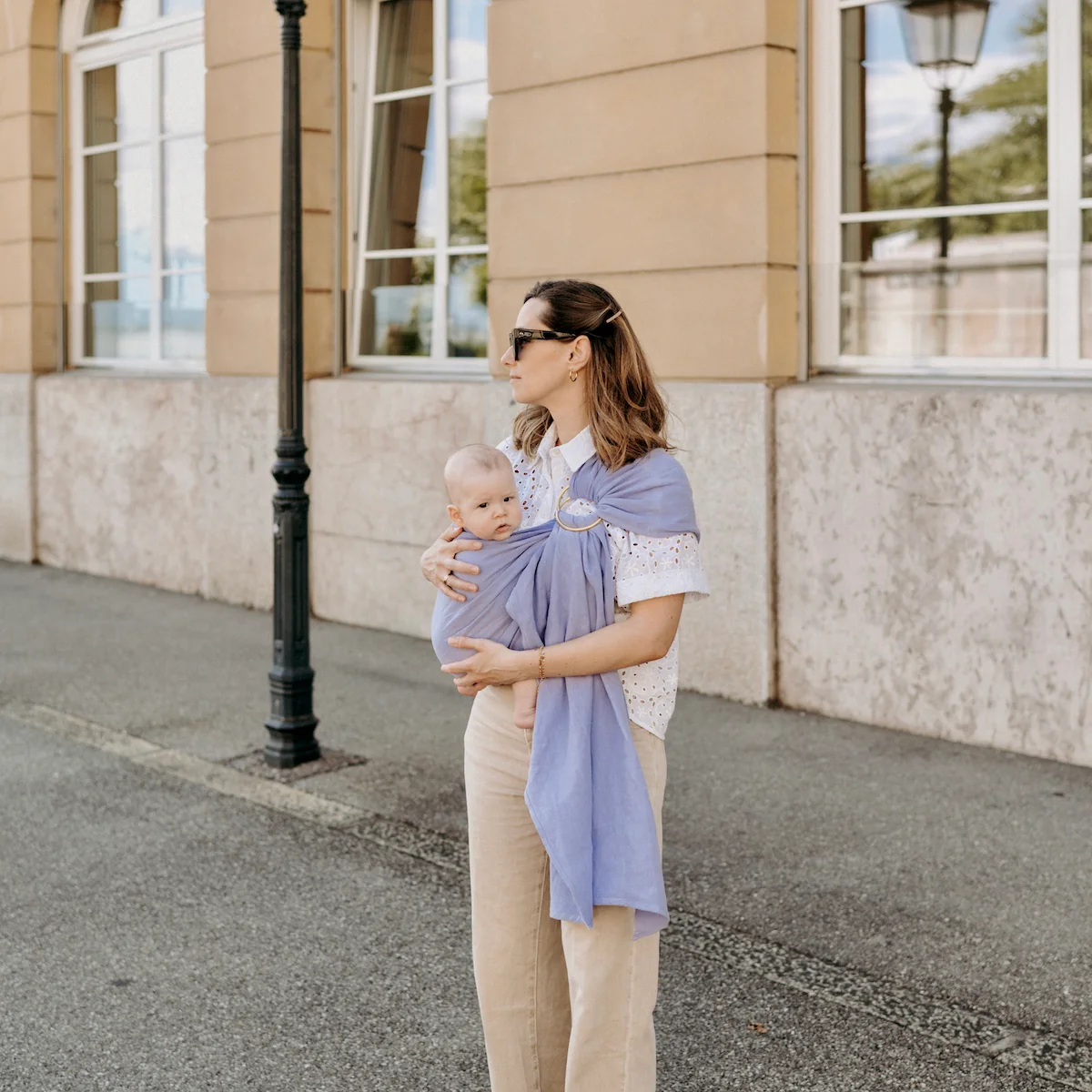 Nous vous conseillons de laver le Sling en lin avant la première utilisation en protégeant les anneaux dans une chaussette.