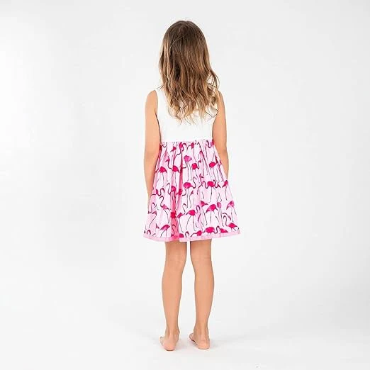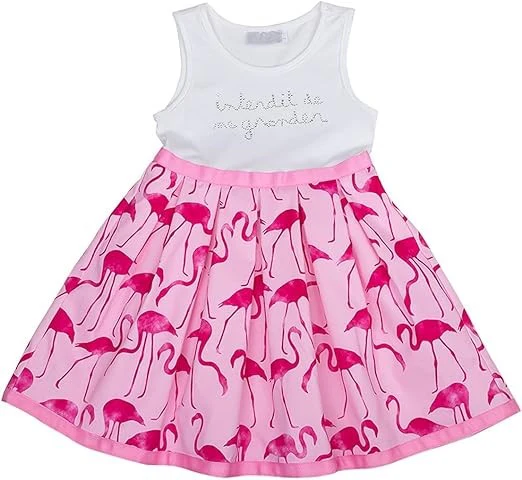 Sans manche, Col rond, Base évasée, Doublure en coton, Liseré contrastant, Imprimé fantaisie, Logo siglé en strass