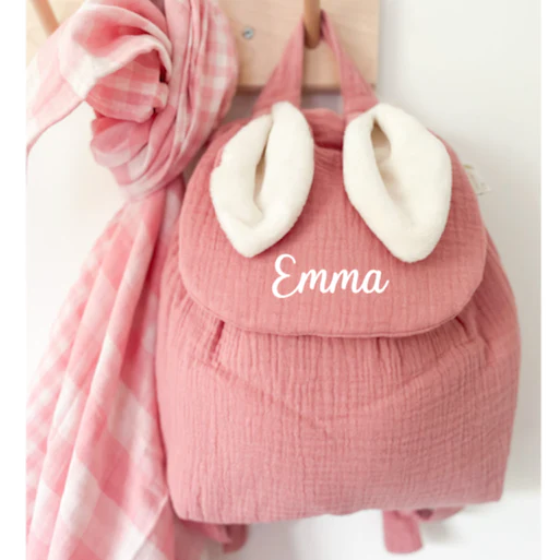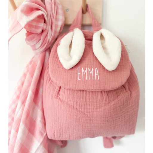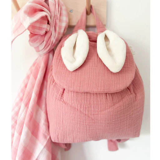 Entièrement confectionné à la main en gaze de coton, ce joli sac à dos accompagnera votre petit bout dans tous ses déplacements !
